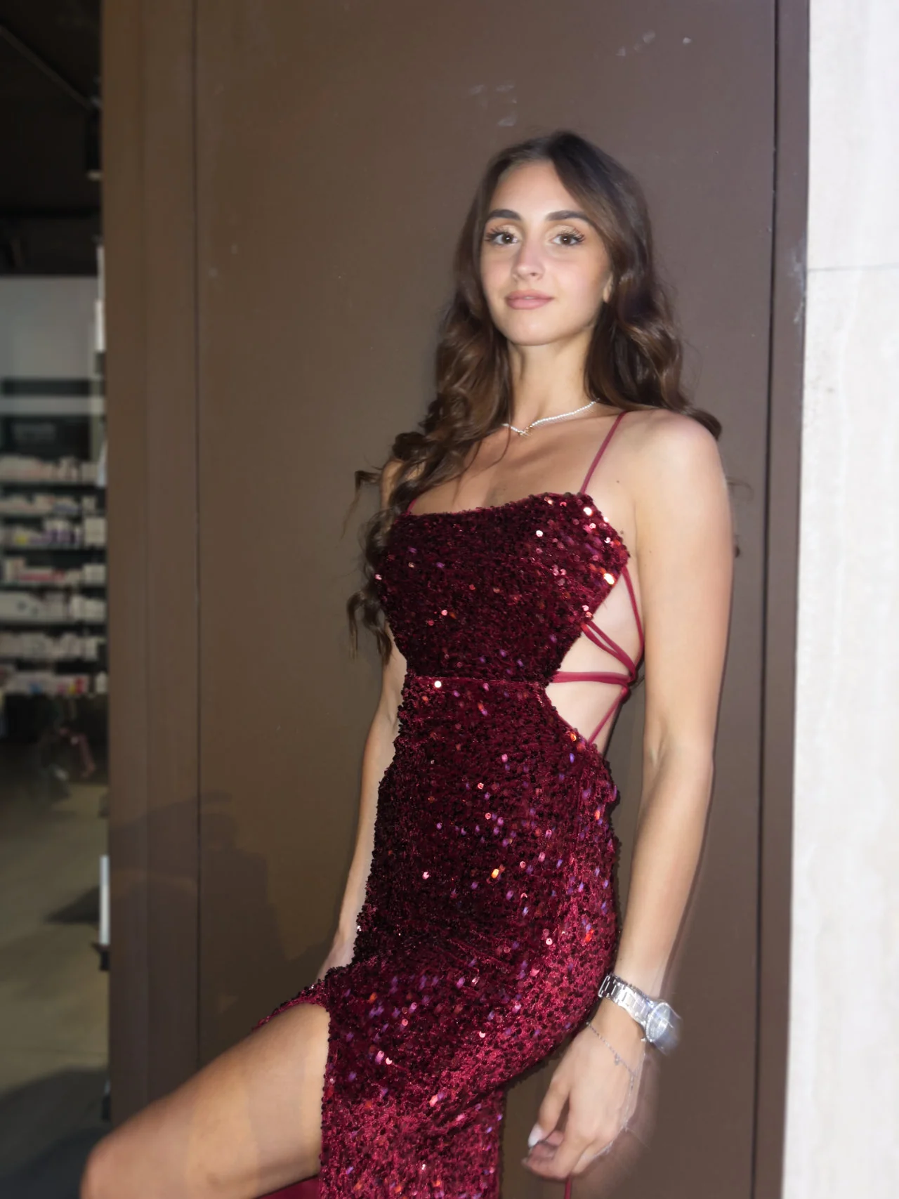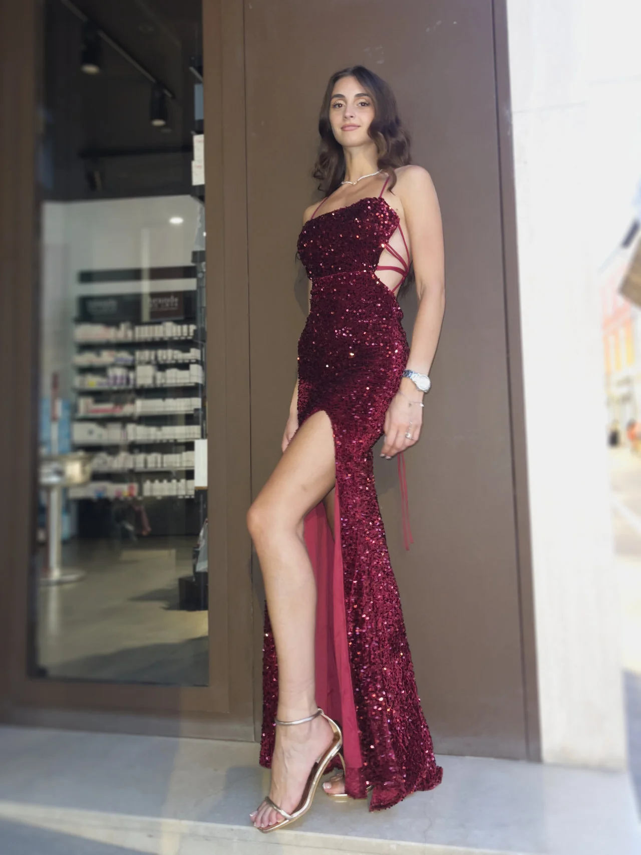 Abito con paillettes e spacco