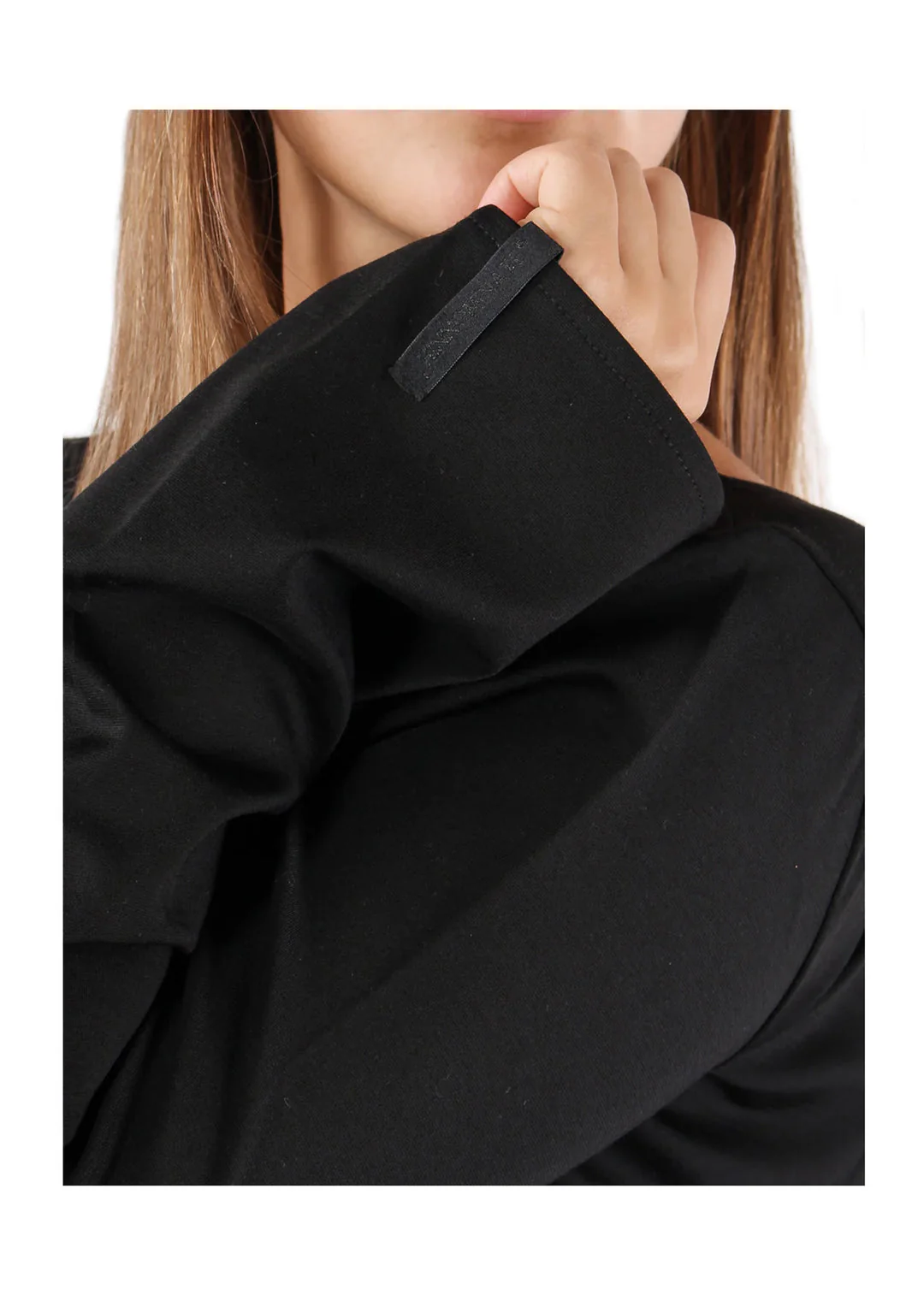 Questo abito in punto milano ha scollo ampio sulla schiena e maniche lunghe, per un look moderno ed elegante. Perfetto per chi cerca un look casual ma sofisticato.