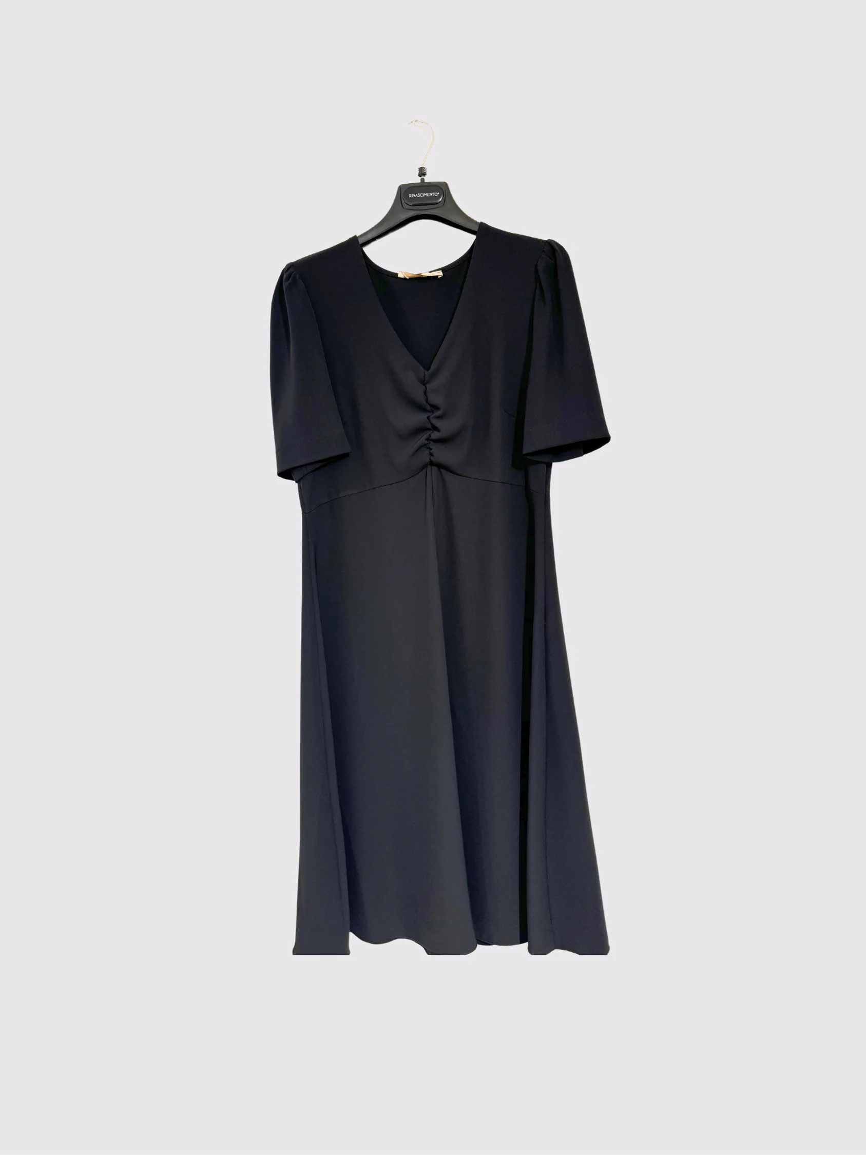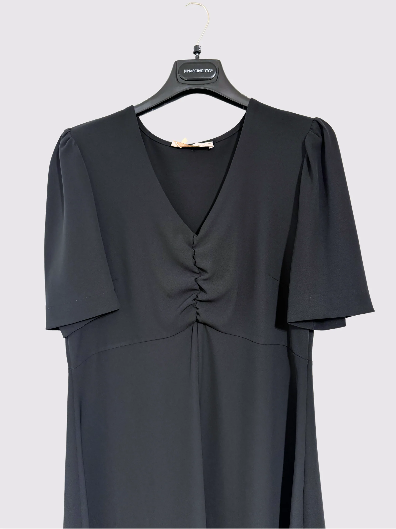 Questo abito corto svasato in nero è un mix perfetto di eleganza e femminilità. Caratterizzato da una delicata arricciatura sul décolleté, esalta la silhouette in modo raffinato, donando un tocco romantico al look. Le maniche corte aggiungono un senso di freschezza, rendendo questo abito ideale per diverse occasioni, da eventi casual a serate più sofisticate. La linea svasata conferisce movimento e leggerezza, offrendo comfort e stile senza compromessi.