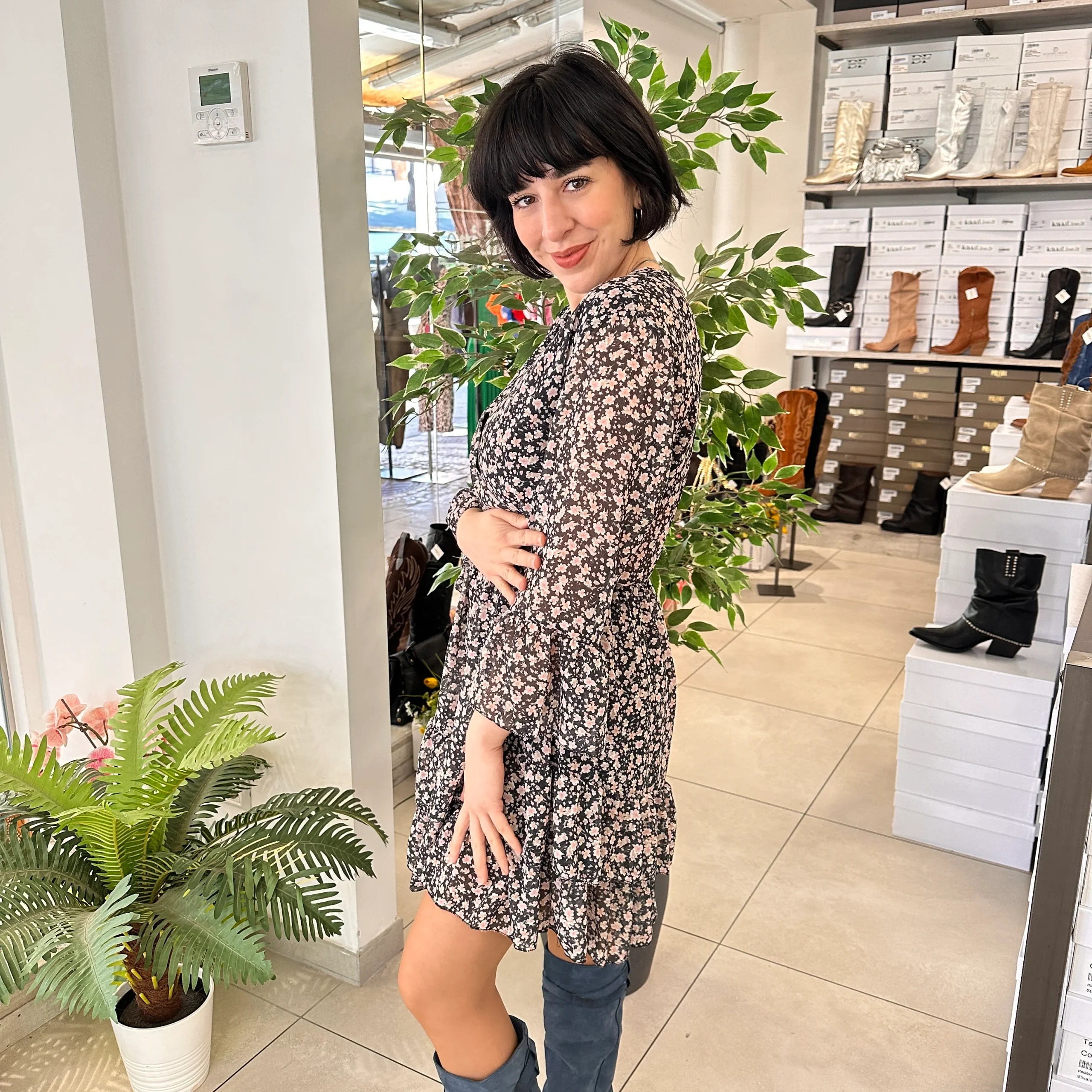 Nuovo Abitino a fiorellini con elastico in vita e gonna volant leggero garzato
