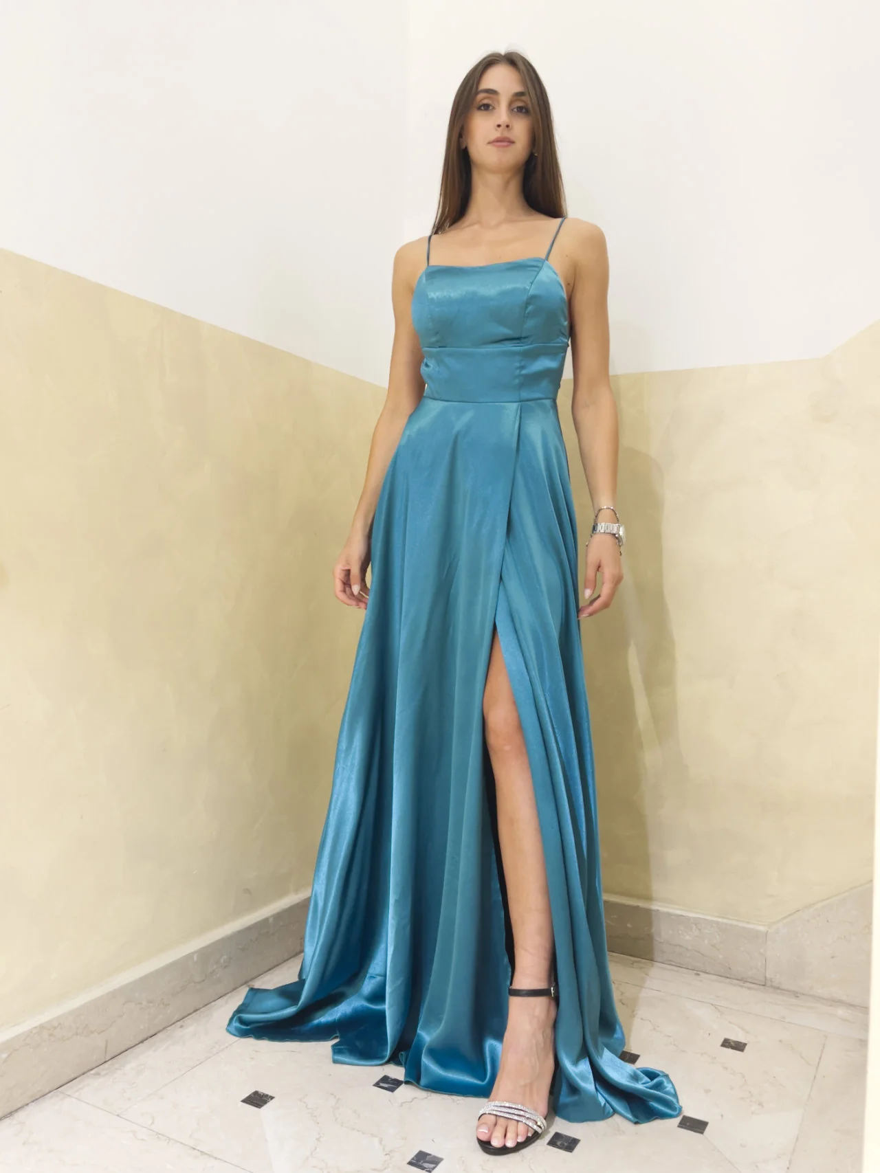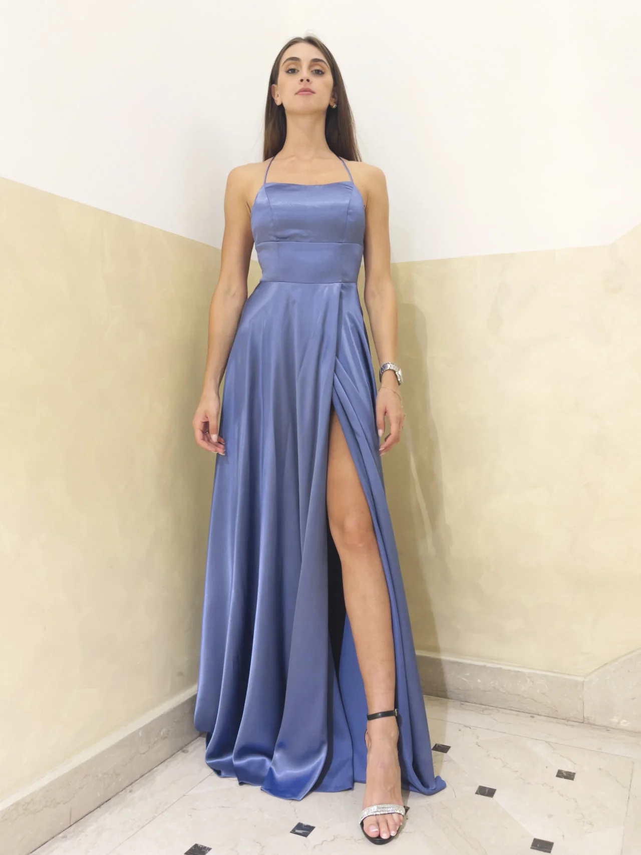 Abito in raso con schiena nuda