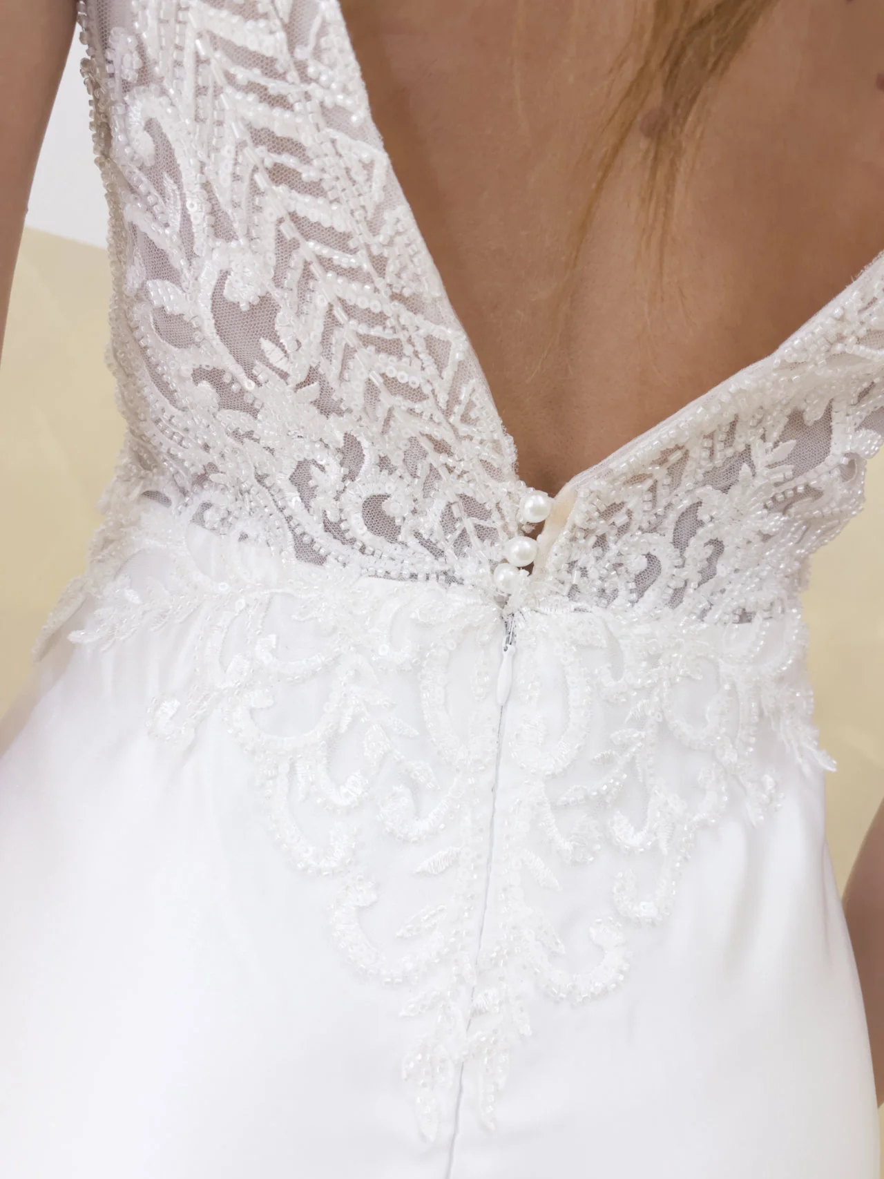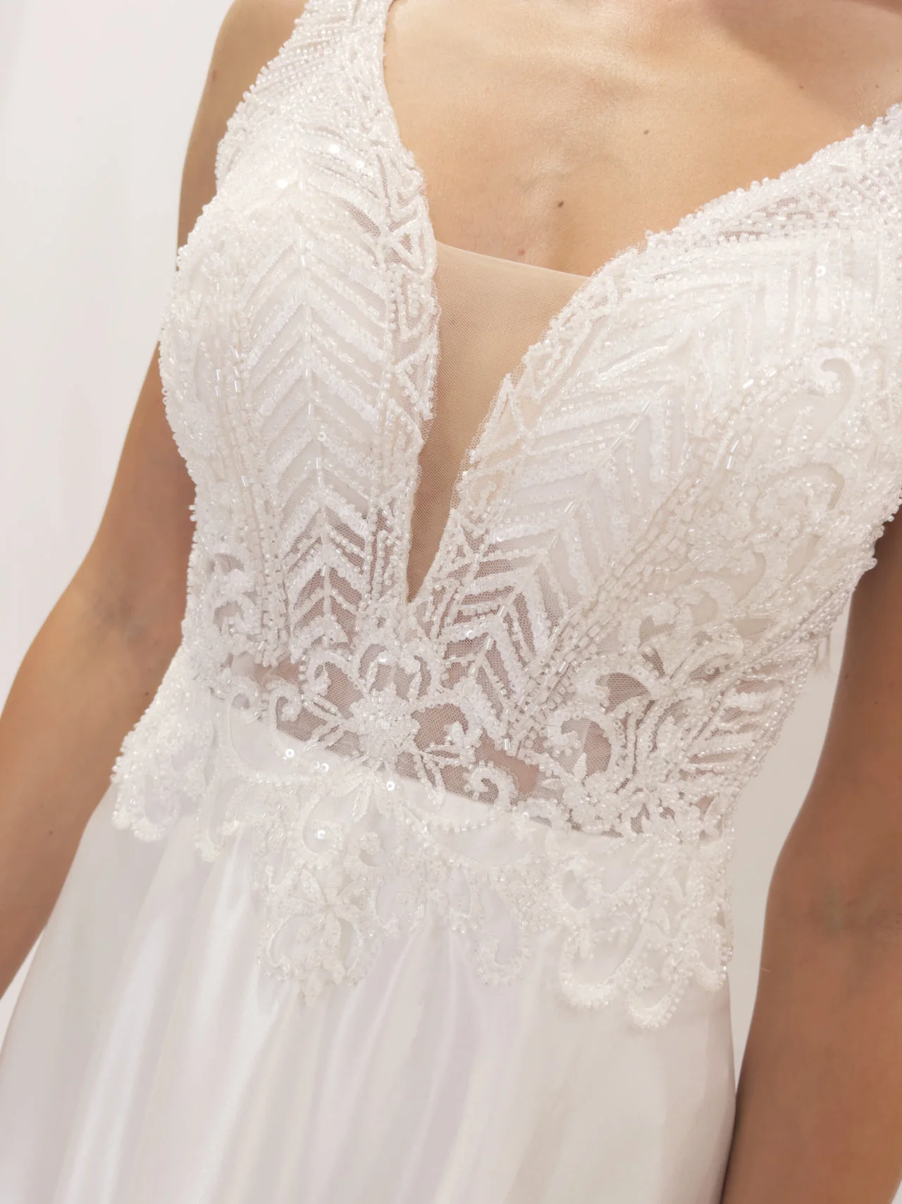 - Brillare di gioia con questa splendida creazione! Il sogno di ogni sposa diventa realtà con il ricamo di paillettes sulla parte superiore, rendendo il giorno indimenticabile!