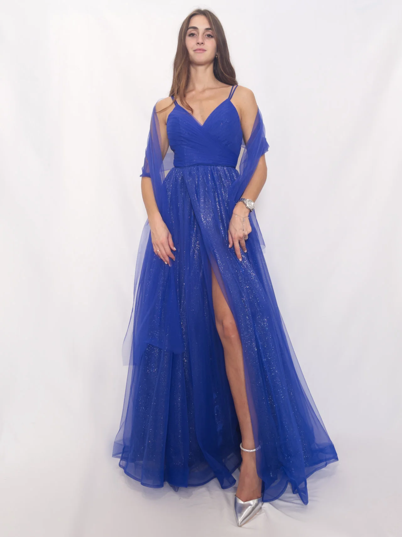 - Dettagli: coppe imbottite, lacci schiena, cerniera invisibile dietro, stola abbinata compresa