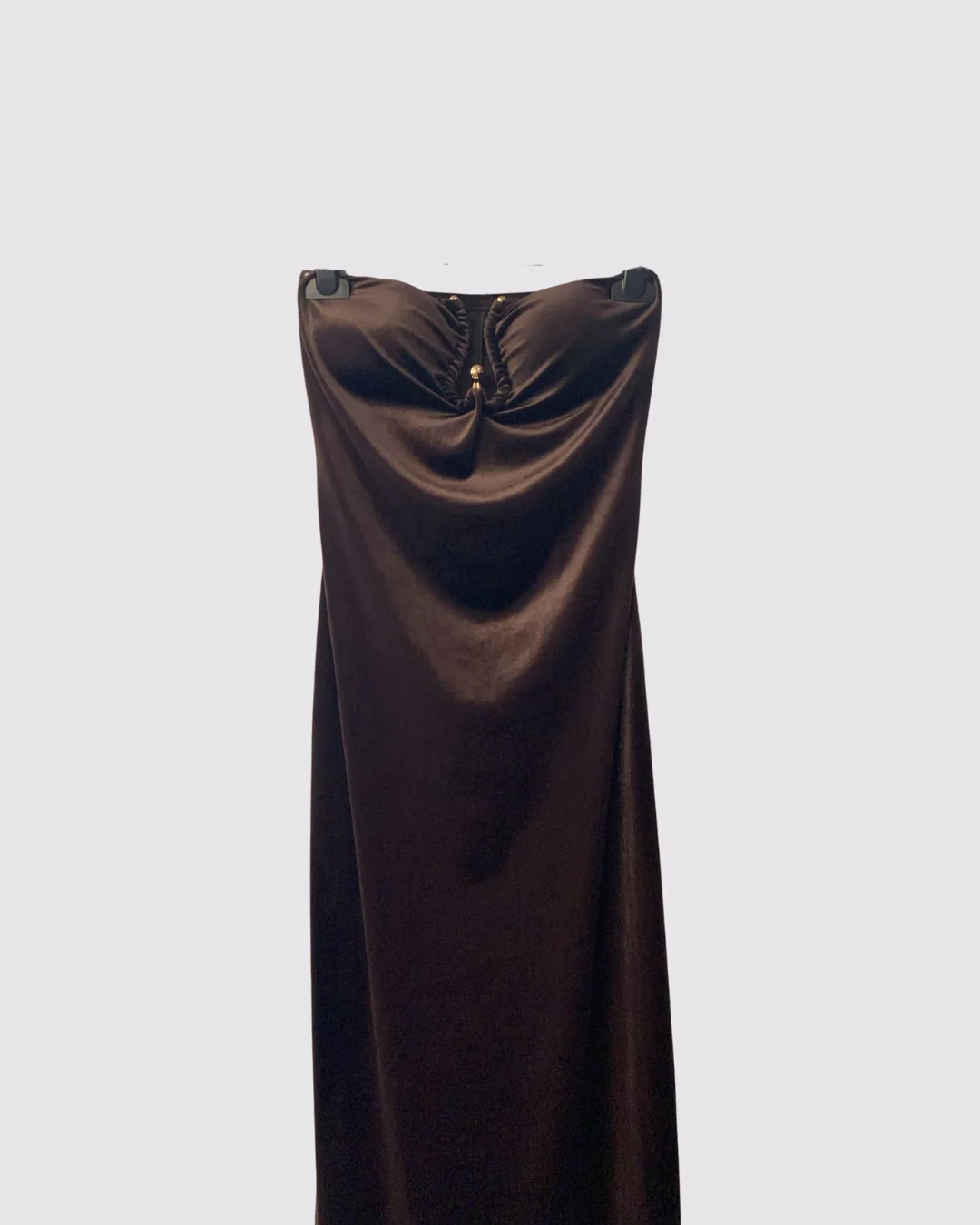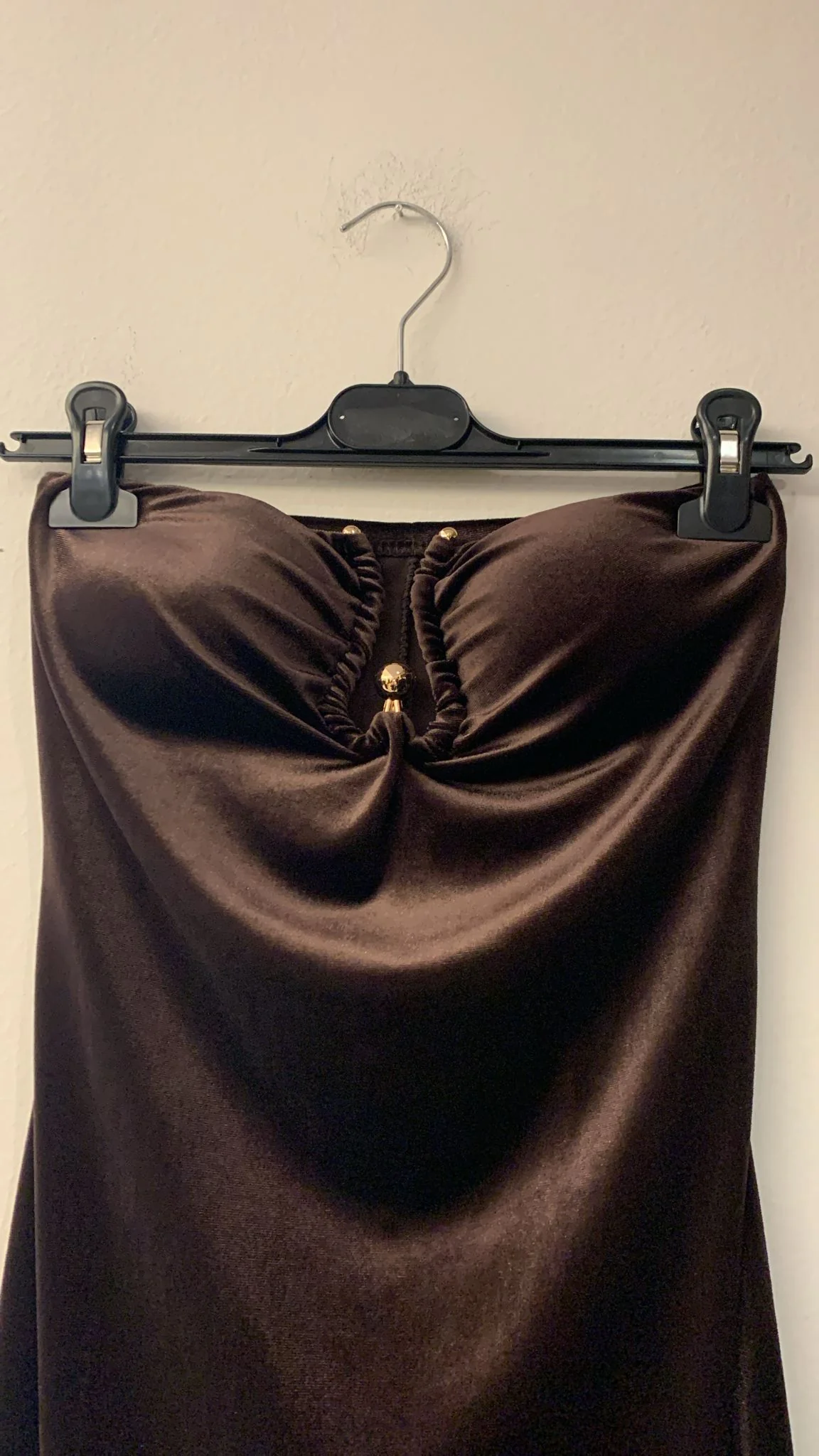 Abito da sera di Emma in velluto marrone, taglia unica, elasticizzato.