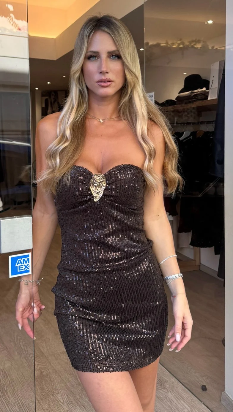 Abito paillettes Marrone Tg Unica Elasticizzato con dettaglio oro