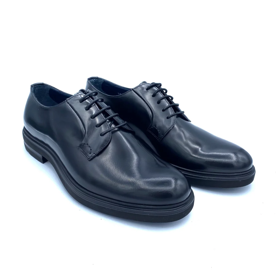 Derby liscio in pelle nera con fondo gomma