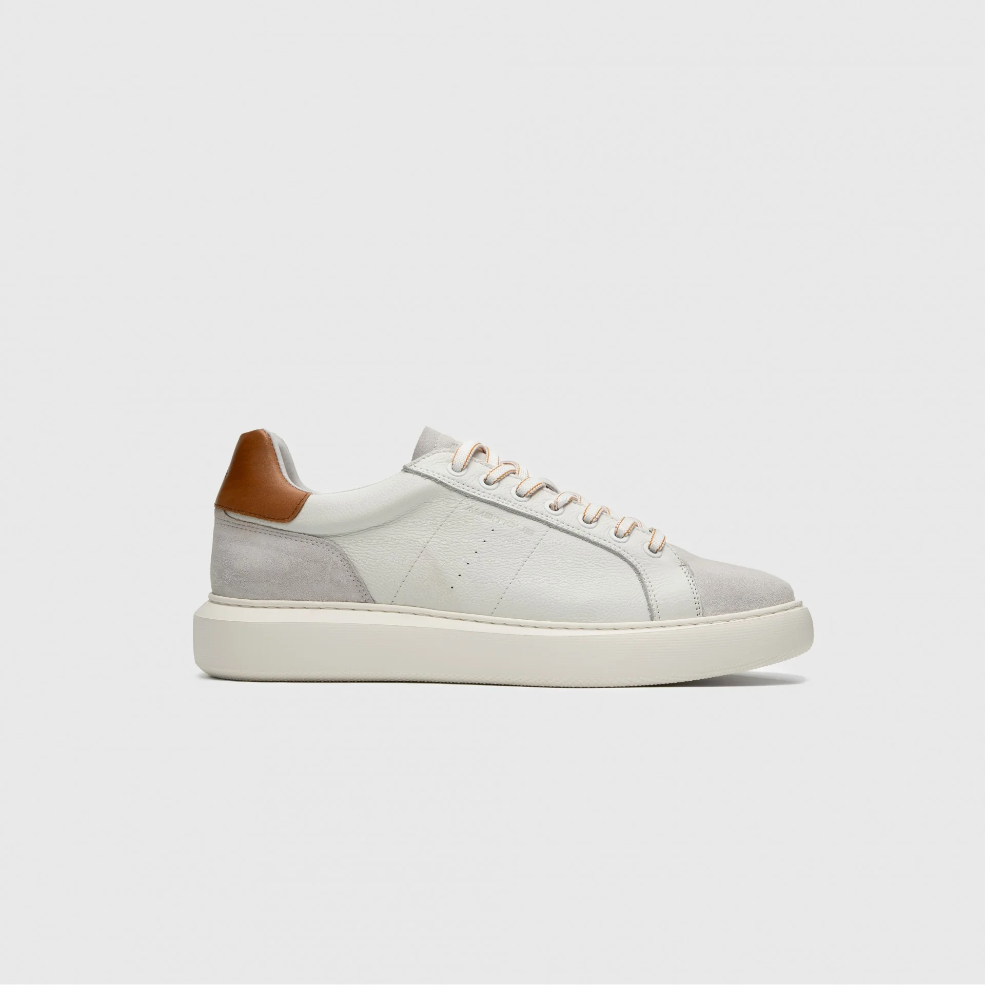 Versione in pelle e suede testurizzato, con logo e dettaglio traforato sul lato. Elemento a contrasto sul retro. Suola in EVA per una maggiore leggerezza.