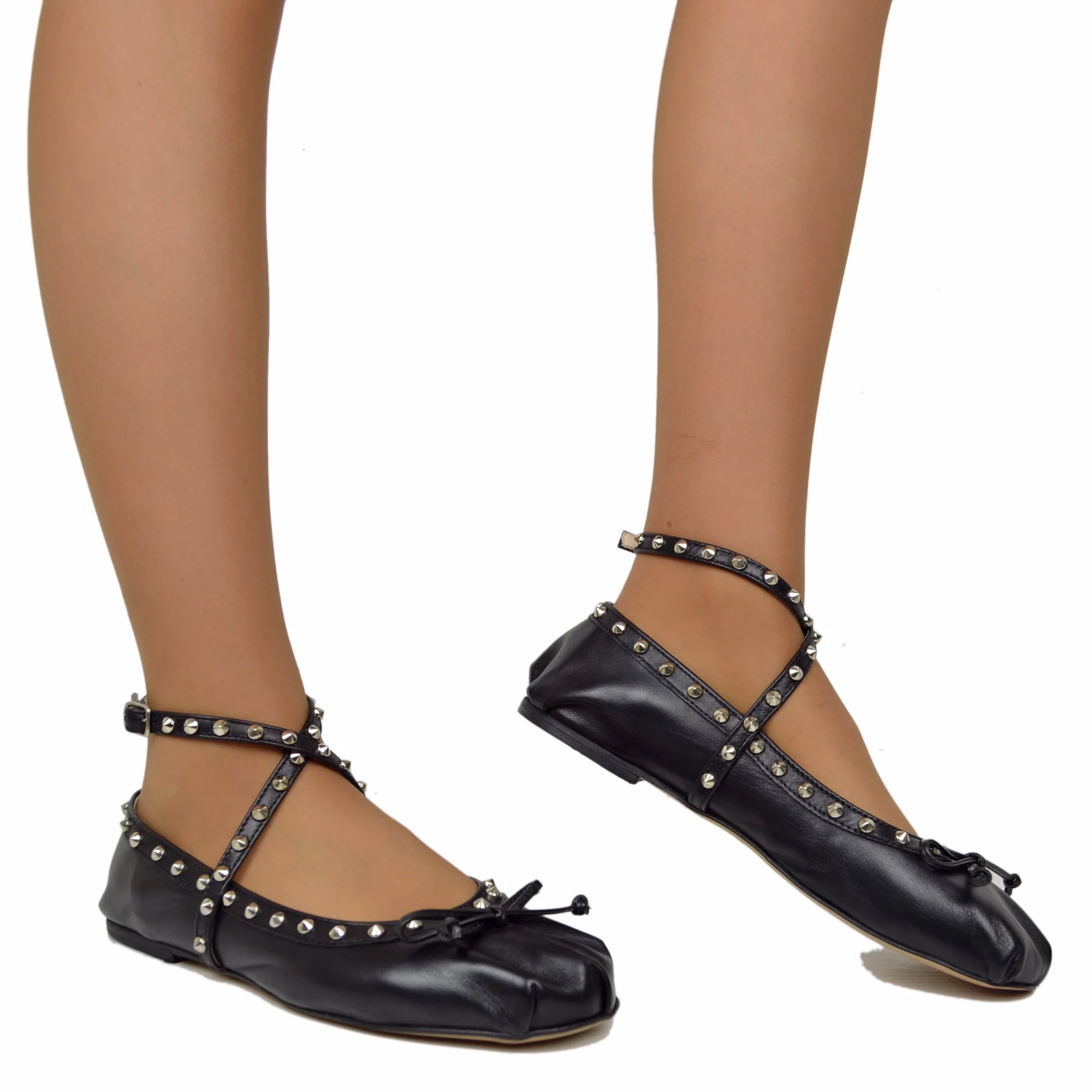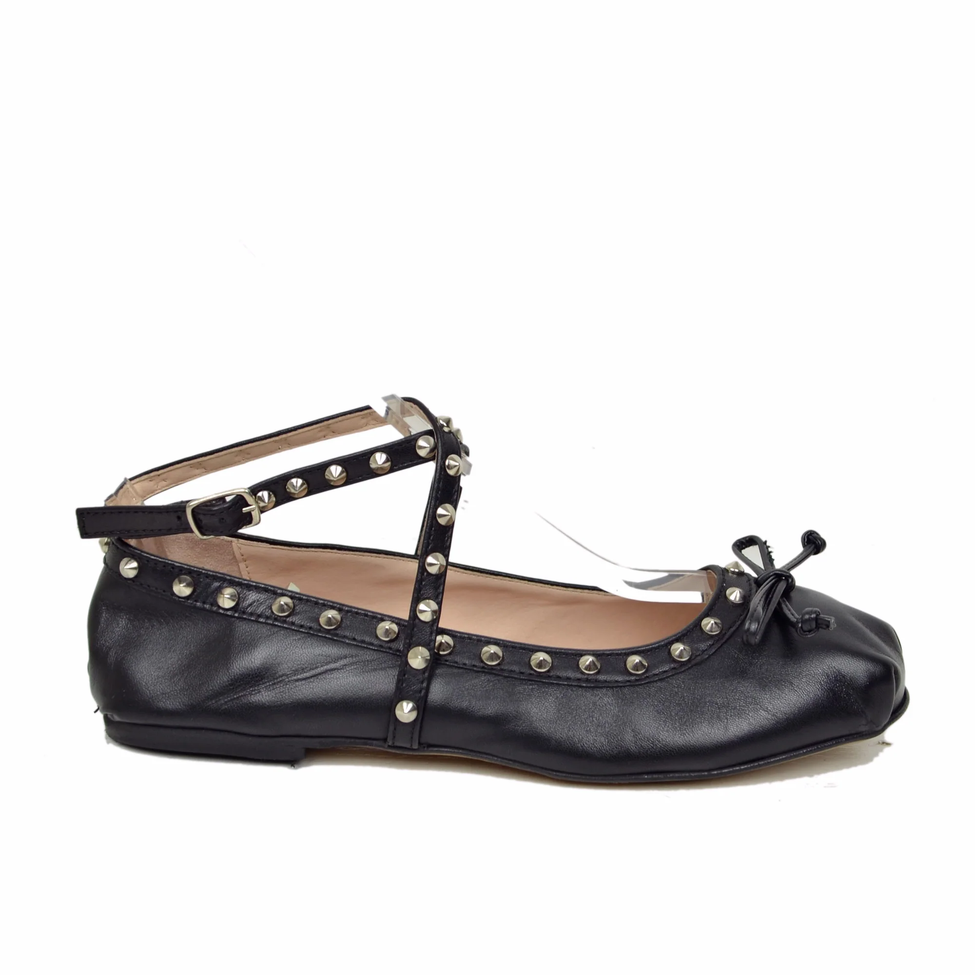 Ballerine Donna Nere Punta Squadrata con Borchie Made in Italy.