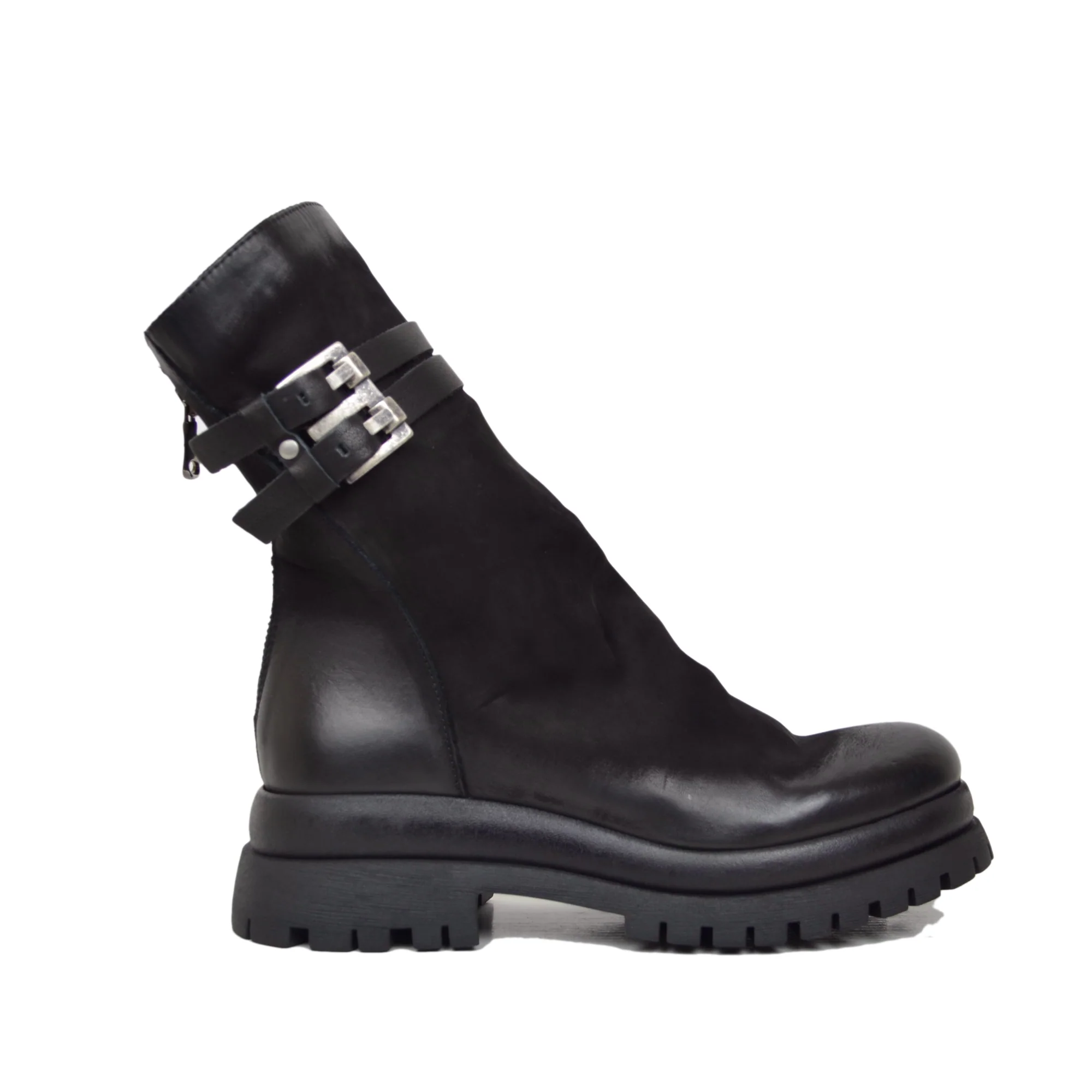 I nostri Biker Chunky boots in pelle nabuk con una comoda zip posteriore e una silhouette che abbraccia la caviglia, sono perfetti per completare il tuo look da motociclista Rocker. Realizzati con materiali di alta qualità, garantiscono una resistenza duratura e un aspetto super cool.