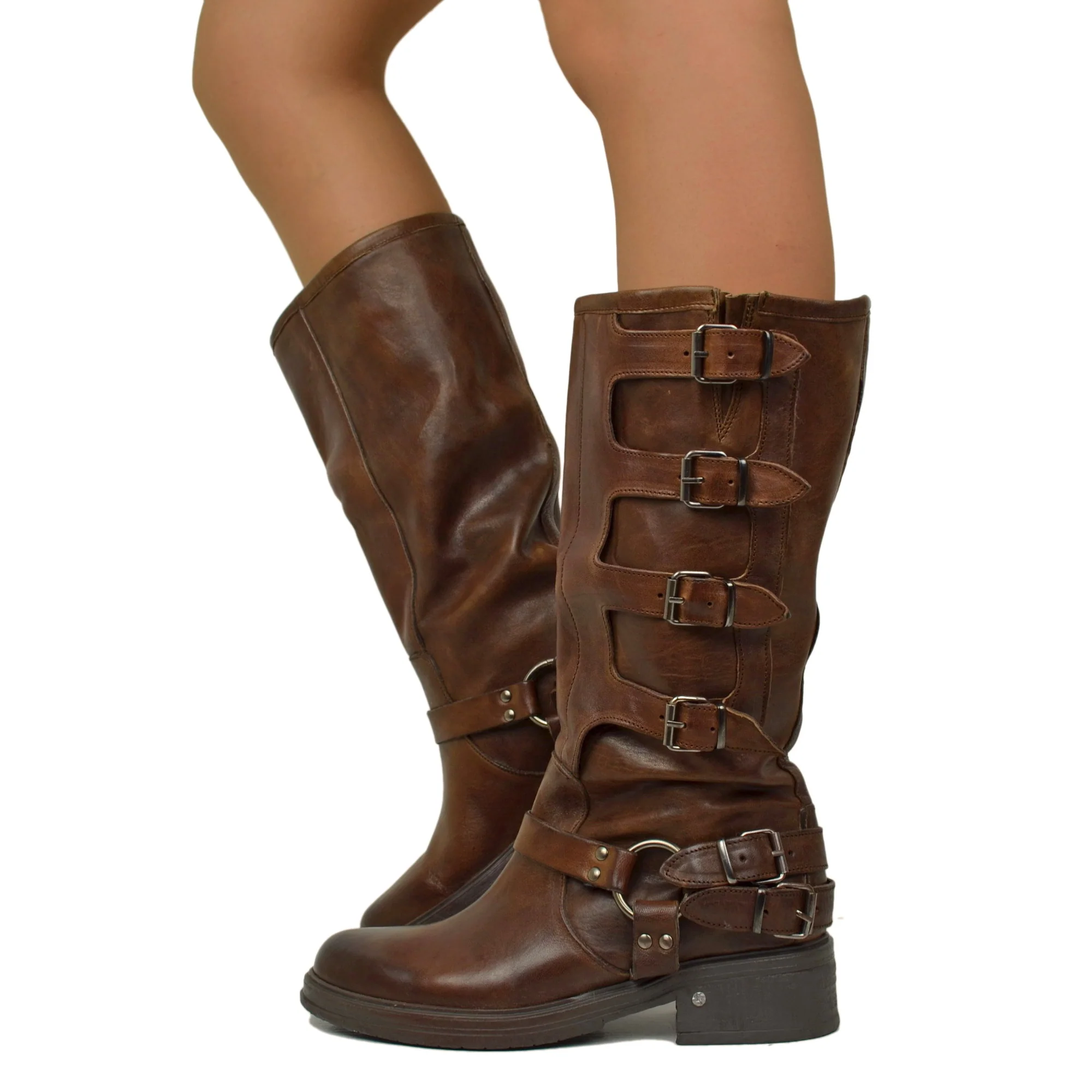 Gli stivali Biker Police con Fibbie Punta Stondata daranno ai tuoi piedi la sicurezza e la stabilità di cui hanno bisogno. Realizzato in Pelle “Bagnata” con fondo gomma, i tuoi biker avranno un look alla moda perfetto per non passare inosservata!