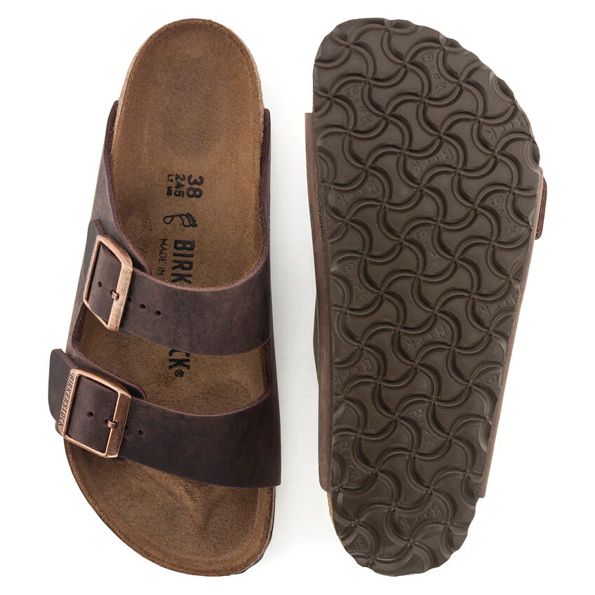 An icon of timeless design and legendary comfort, the Arizona sandal has been defining style since 1973. Handcrafted for quality, oiled nubuck leather looks distinctly heritage, designed to age over time for a perfectly worn, one-of-a-kind look. Complete with legendary BIRKENSTOCK design elements, like a contoured cork-latex footbed for the ultimate in support.