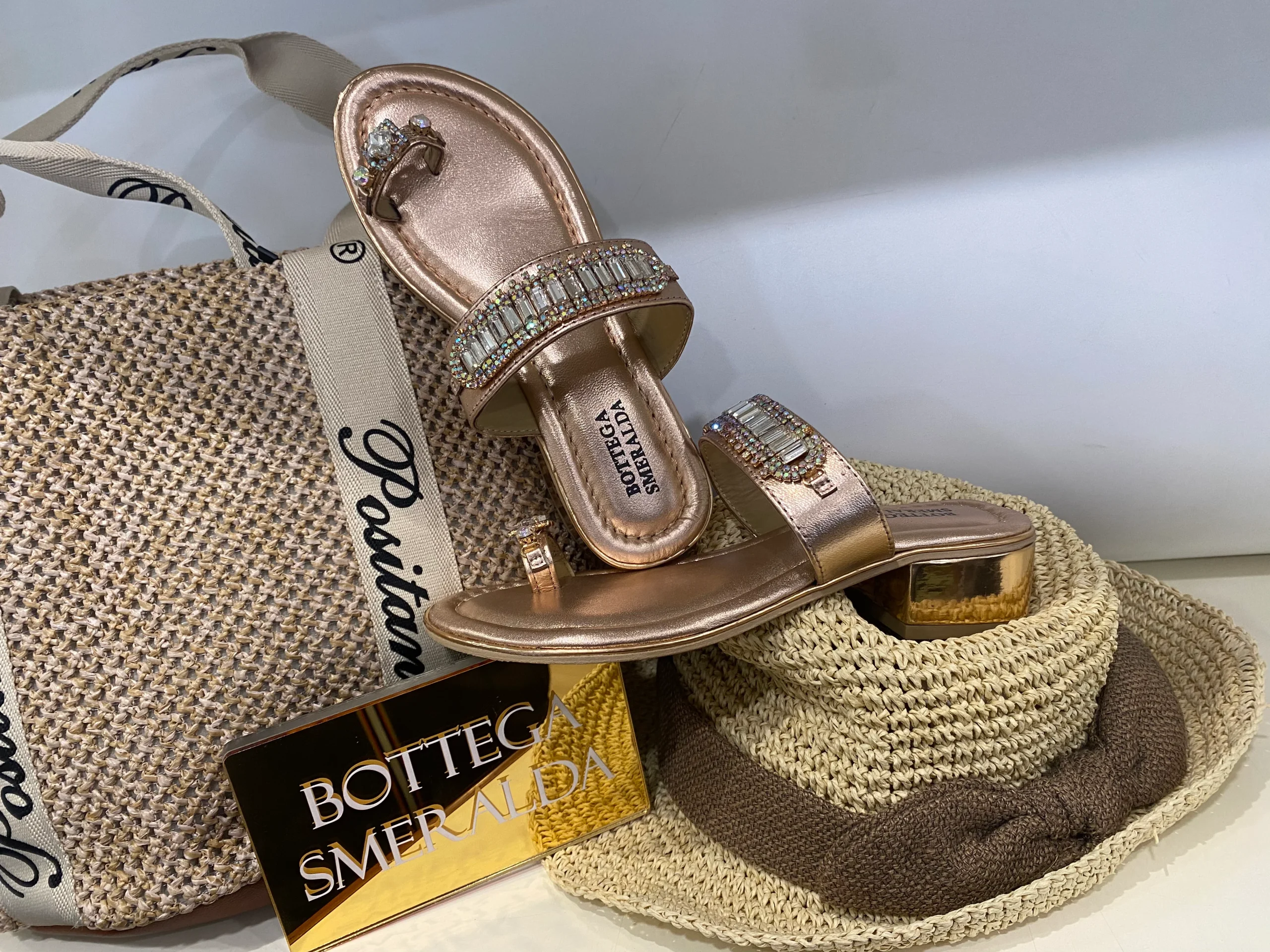 Bottega Smeralda 523LLQ sandalo infradito metallizzato rosa con accessori