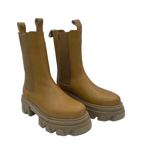 Stivale 3/4 in pelle con elastici laterali e fondo combat style