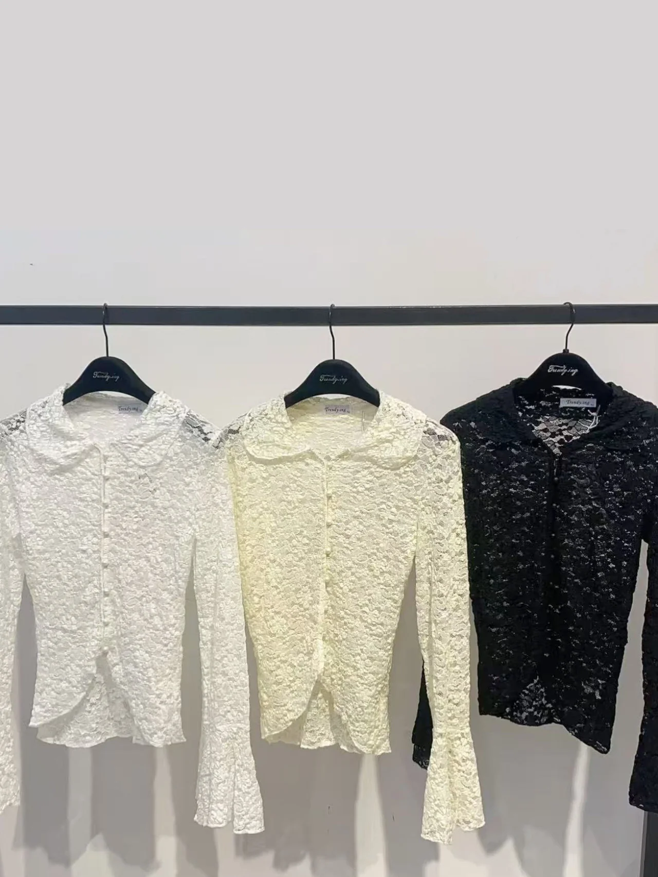 - Aggiorna il tuo guardaroba con questa raffinata camicia in pizzo da donna, realizzata in tessuto elasticizzato e caratterizzata da polsi svasati, perfetta per un look trendy e casual.