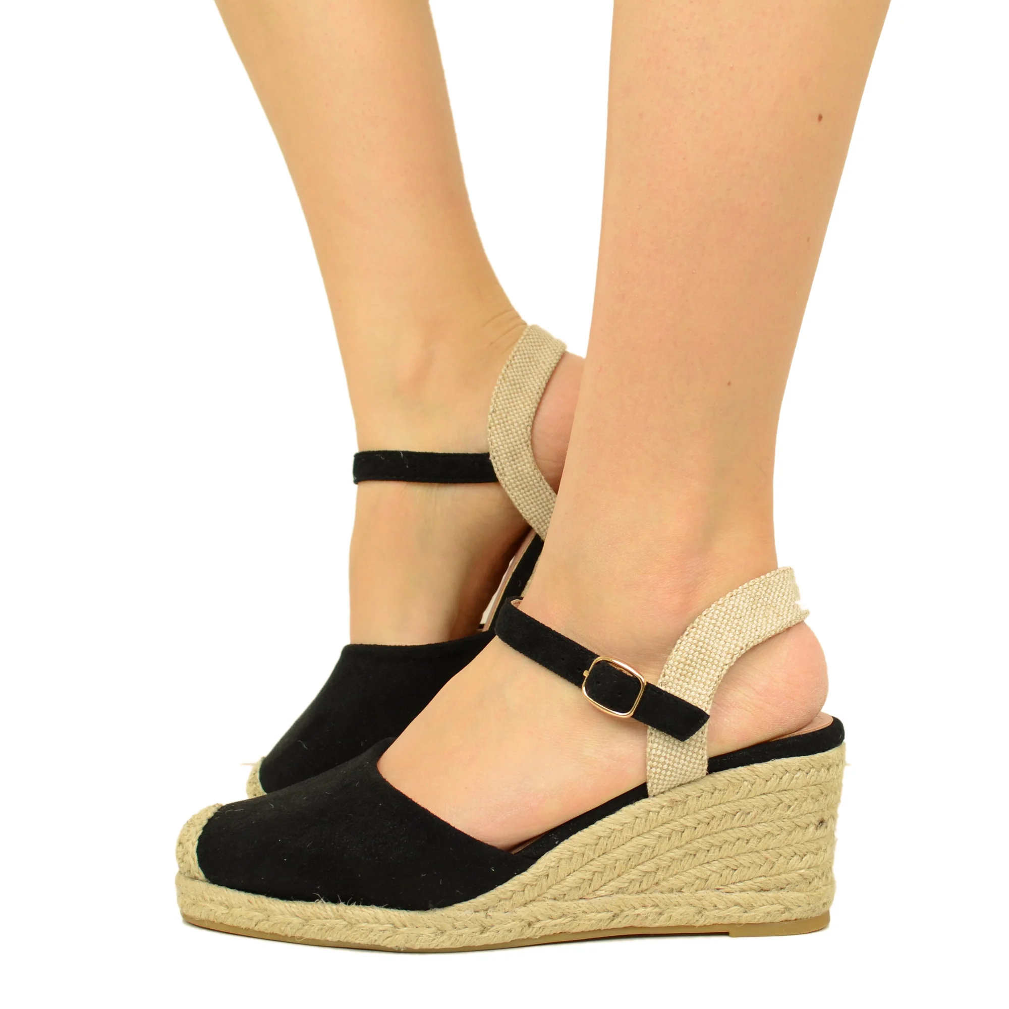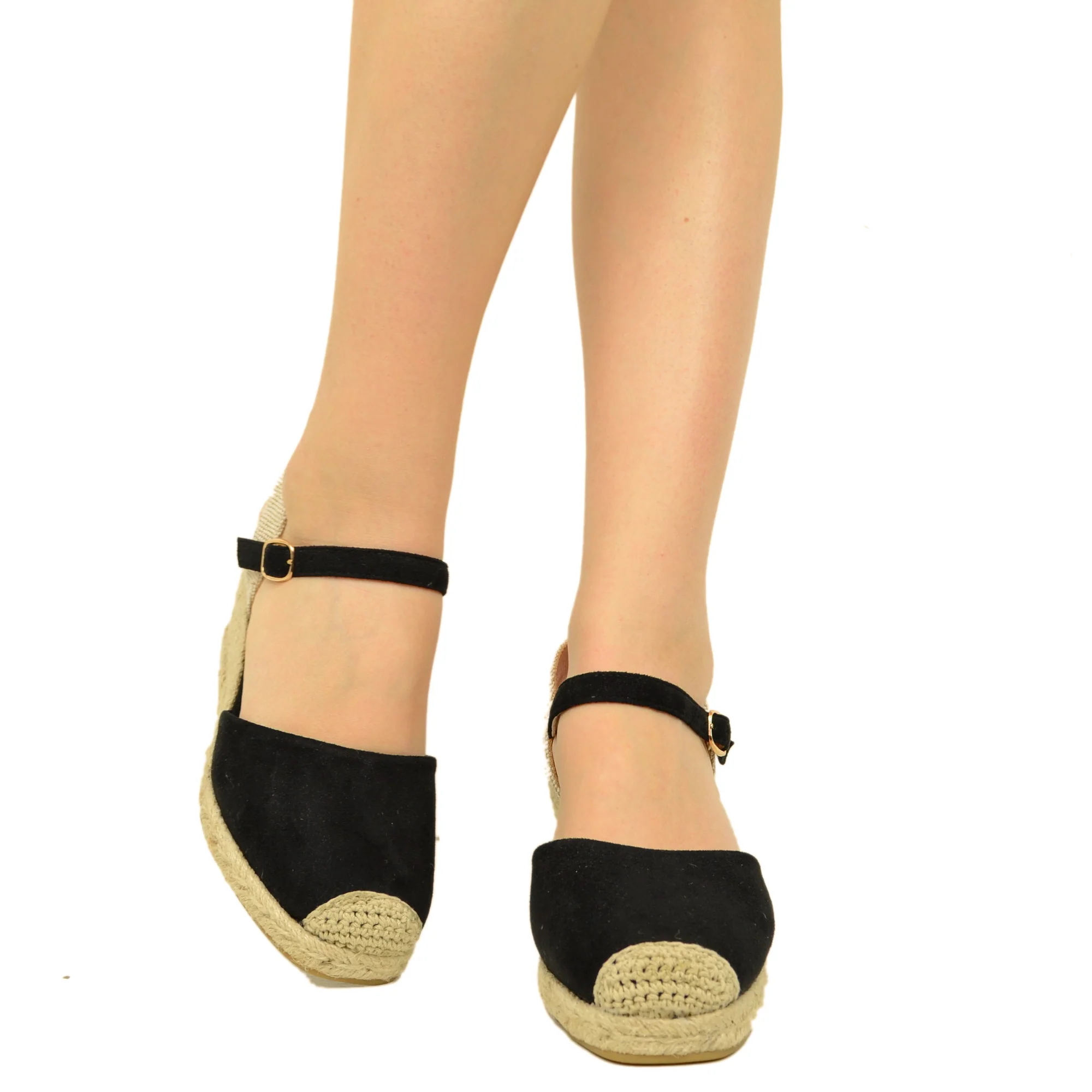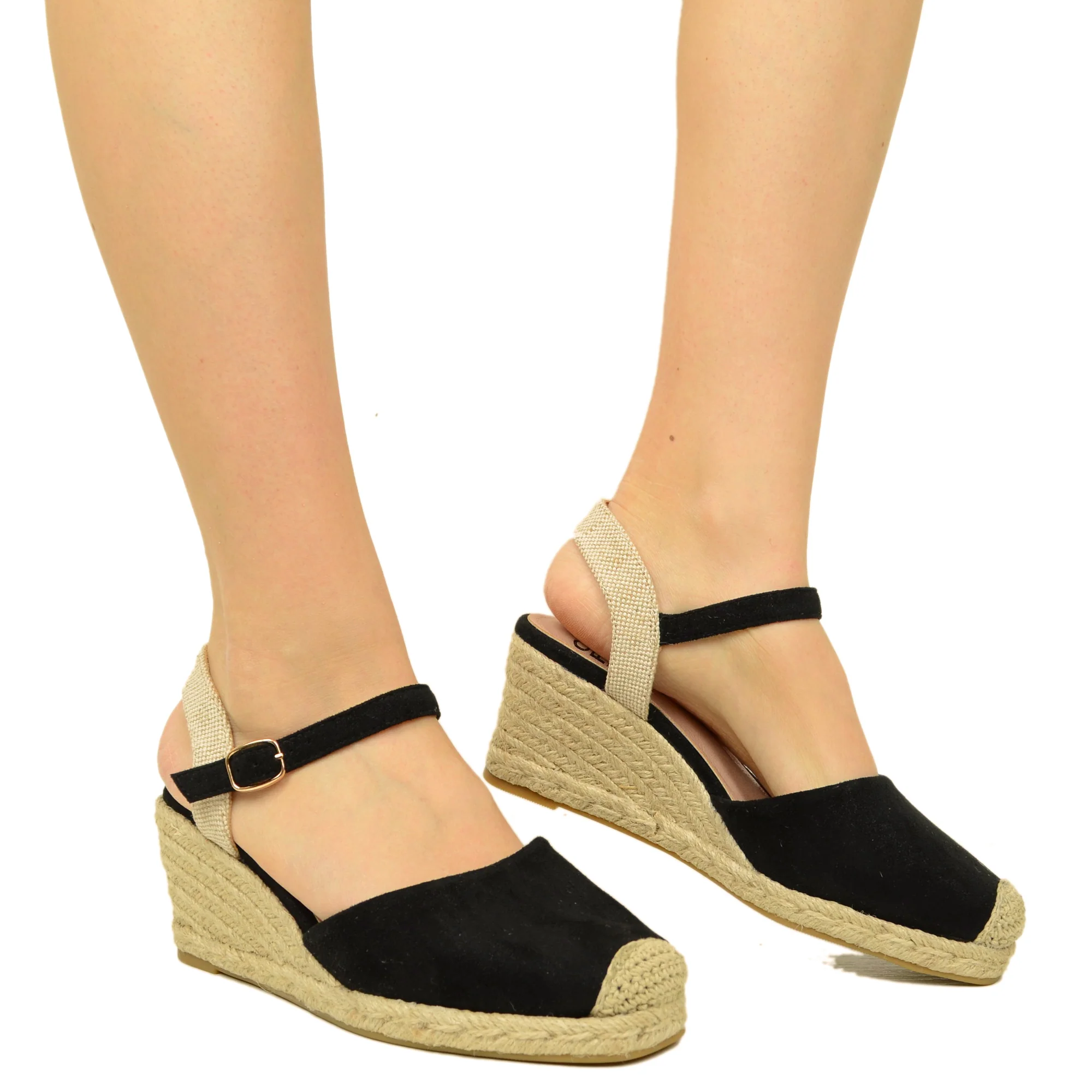 Campesine Donna Nere con Zeppa in Corda Similpelle Scamosciata