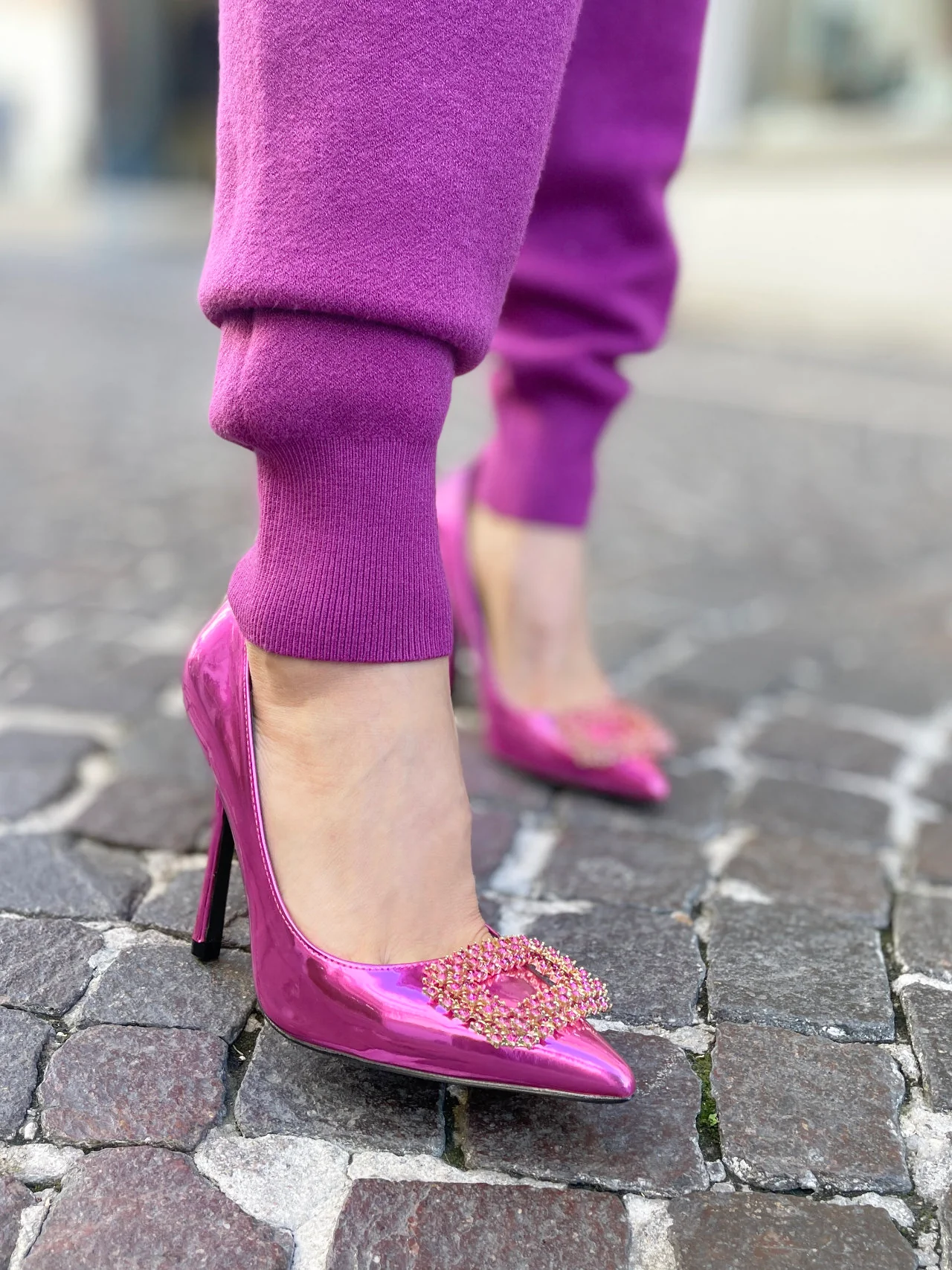 Scarpe da donna décolleté con rettangolo di strass in punta, in materiale effetto lucido dal look fashion adatto a più occasioni Tomaia sintetica Suola sintetica Tacco altezza: 11 cm Art. LD-1177
