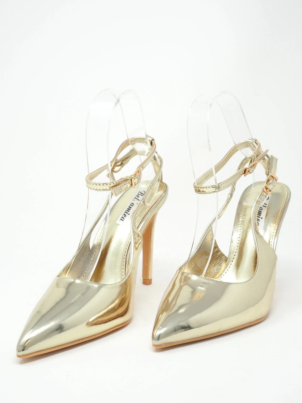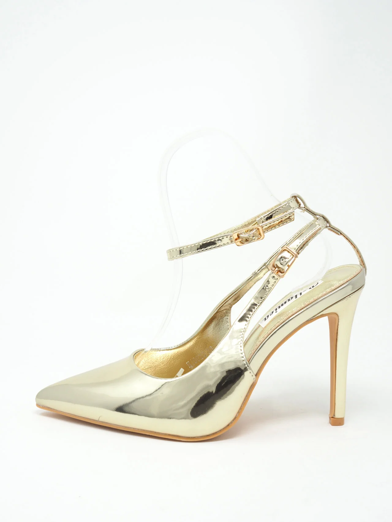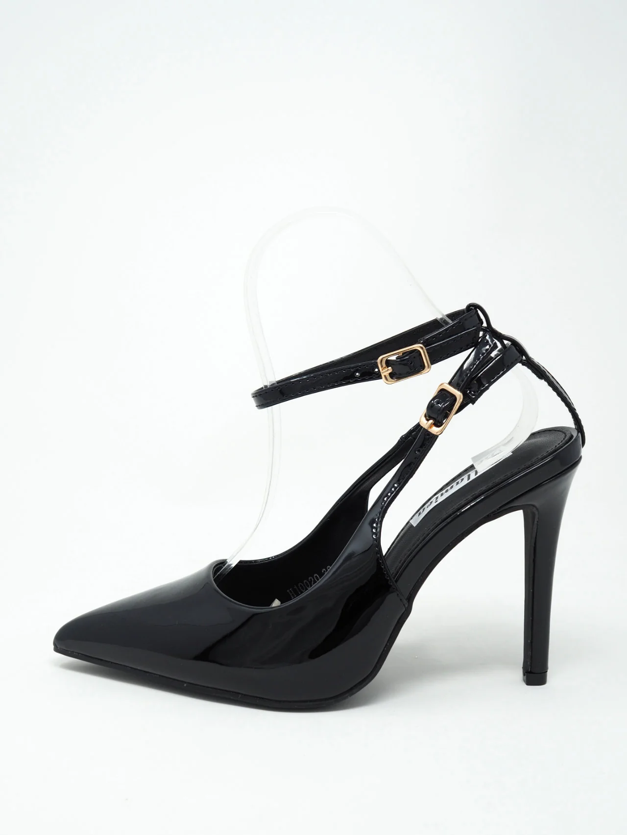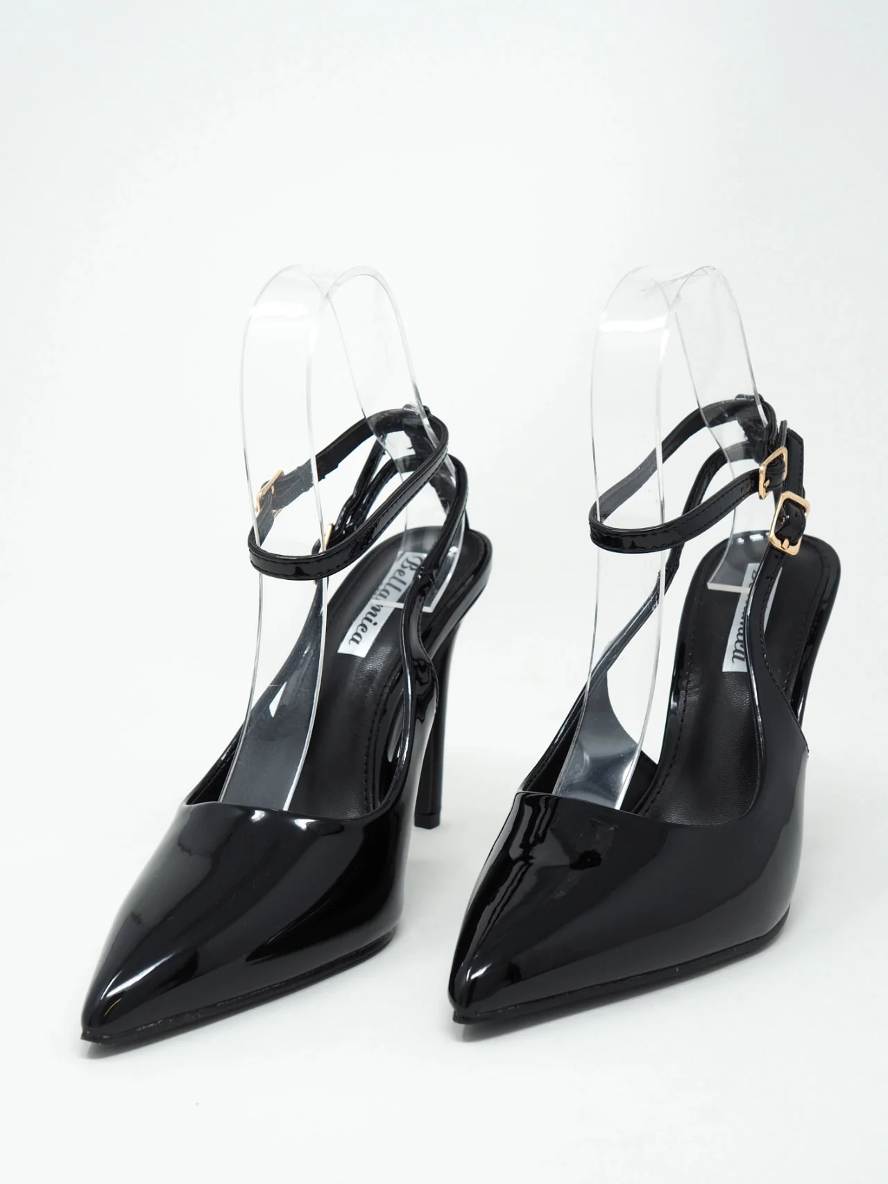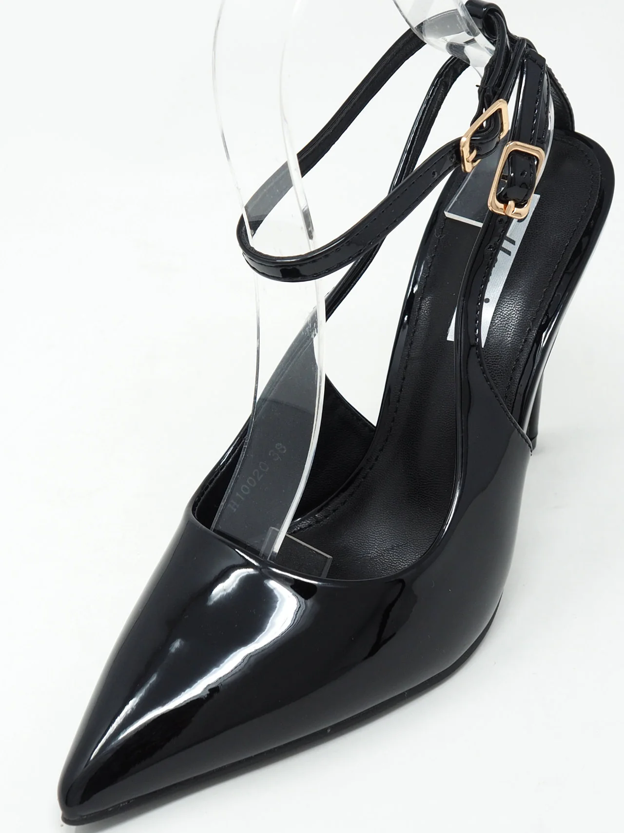 Eleganti décolleté lucide con 2 cinturini, a punta con il tallone scoperto e tacco fino, dal look fashion adatto a più occasioni. Tomaia sinteticaSuola sintetica Tacco altezza: 10 cm Art. H10020