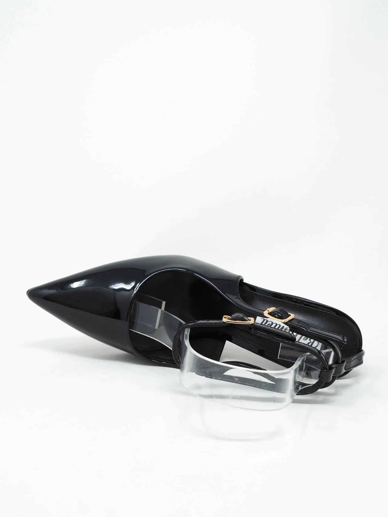 - Eleganti décolleté lucide con 2 cinturini, a punta con il tallone scoperto e tacco fino, dal look fashion adatto a più occasioni.