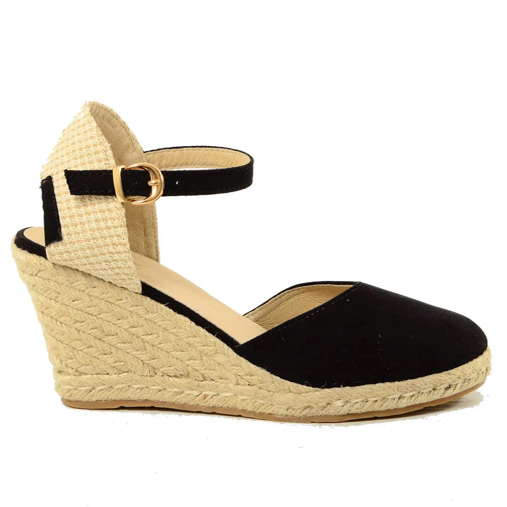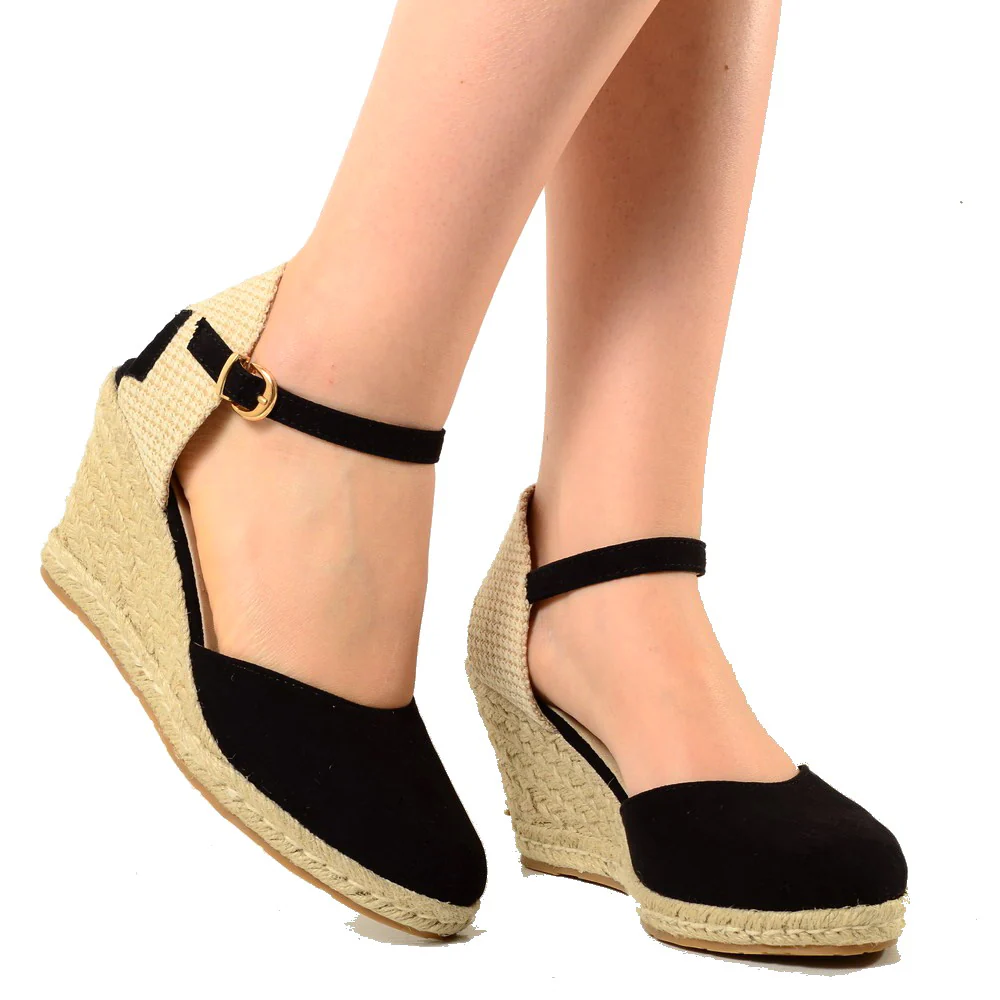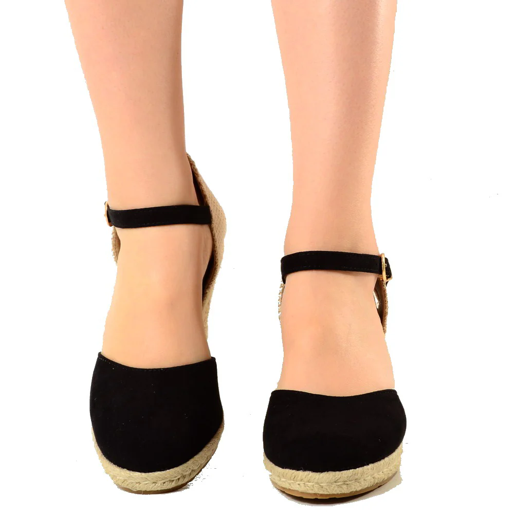Espadrillas Campesine in Similpelle Scamosciata, Platform con Fondo a Zeppa in Corda. Nuovi Sandali con Cinturino alla Caviglia in Stile Pin Up. Sandalo da Mare in Stile Anni ’60 For Summer Party.