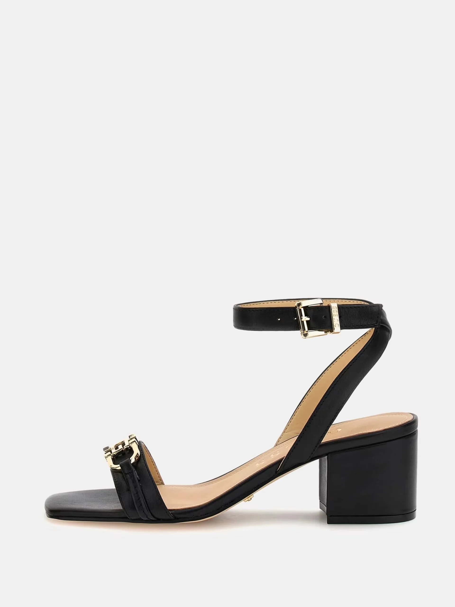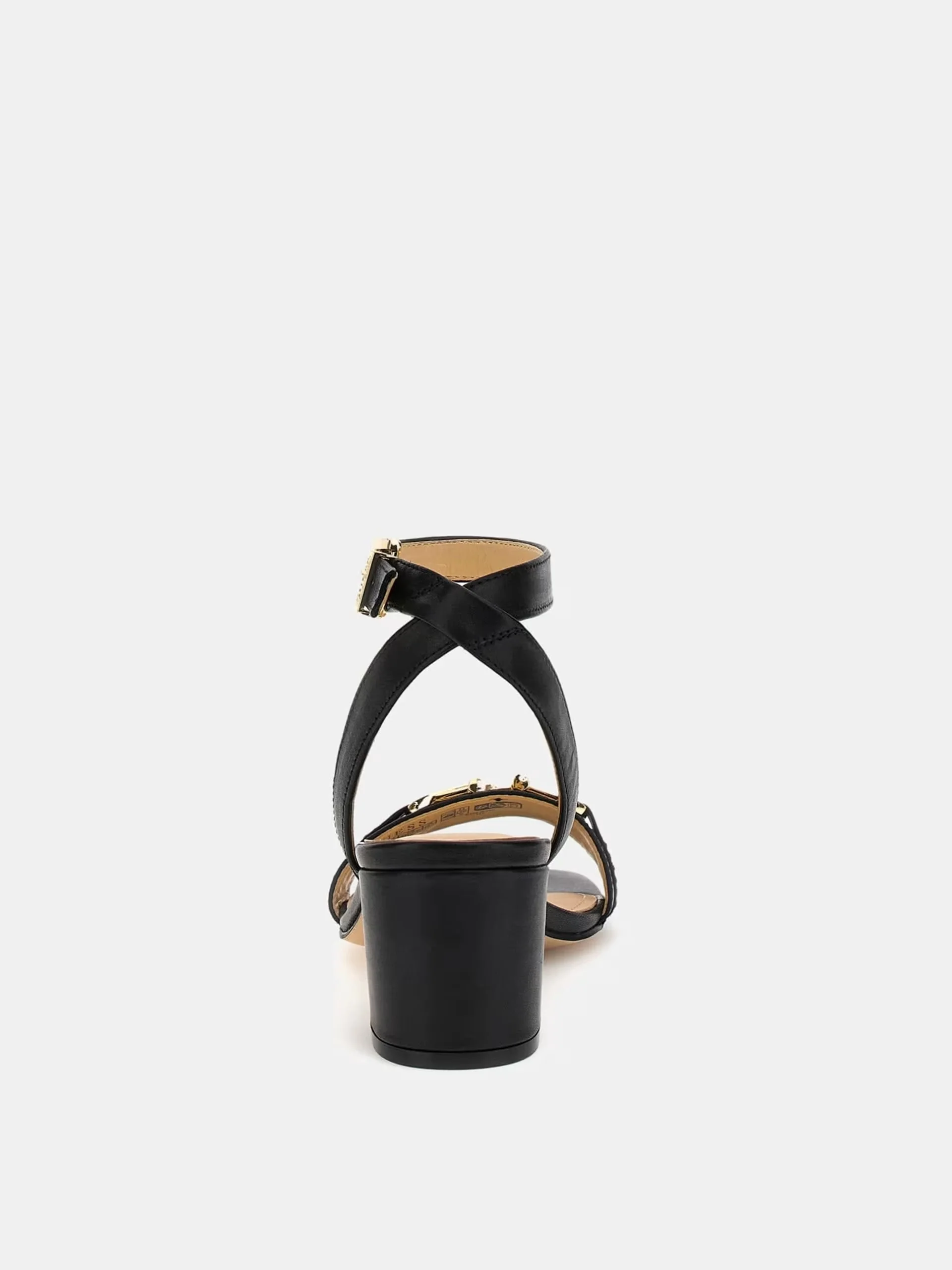 Sandalo in vera pelle. Punta quadrata. Altezza tacco 5 cm. Dettaglio in metallo frontale con scritta logo.Composizione tomaia: 100% Vera Pelle.Sottopiede in pelle.Fodera interna in tessuto.Suola in gomma ammortizzata