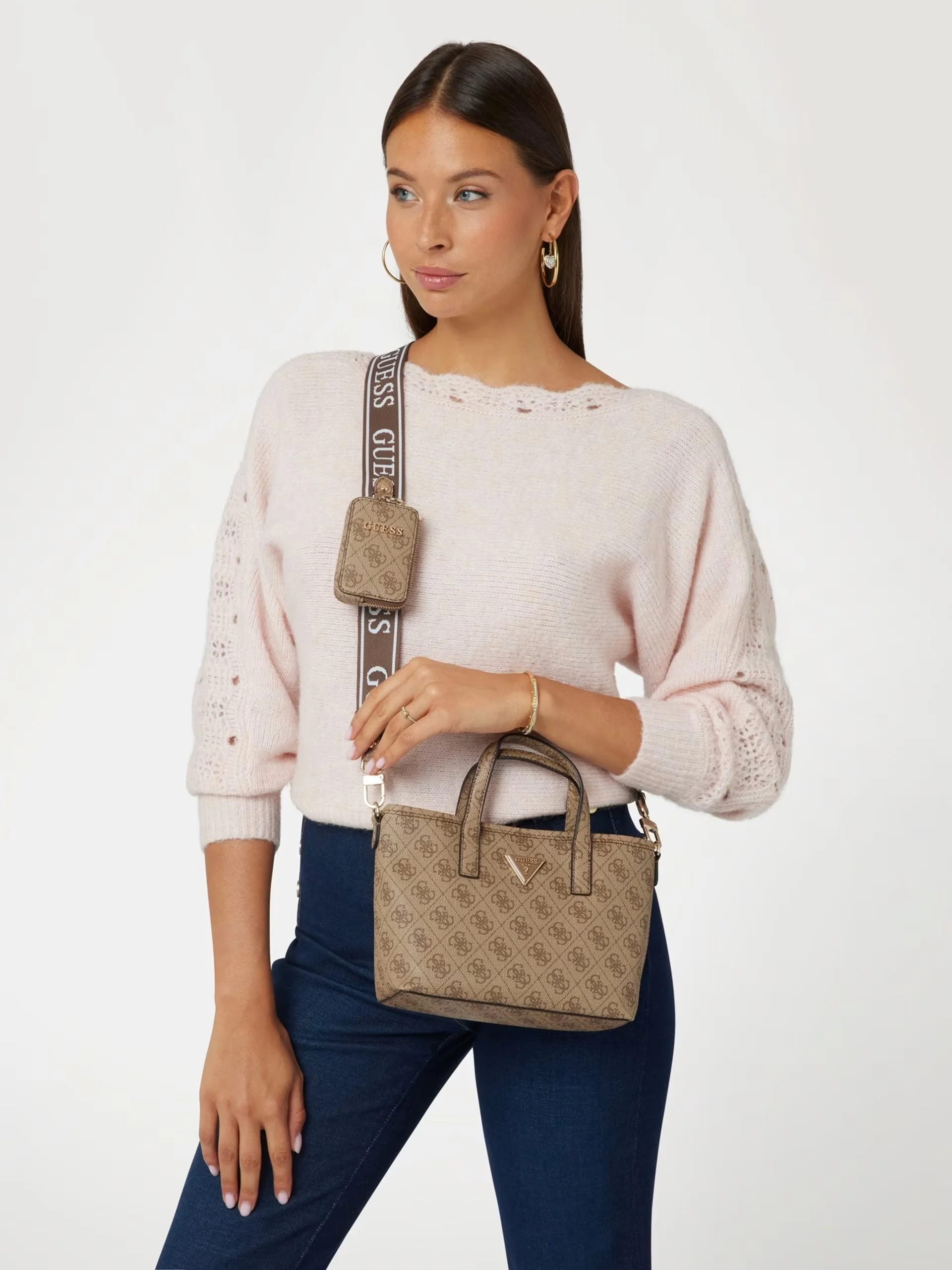 Guess HWSG92 11750 Mini borsa a mano Latona 4G latte logo