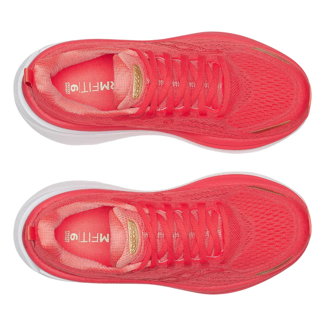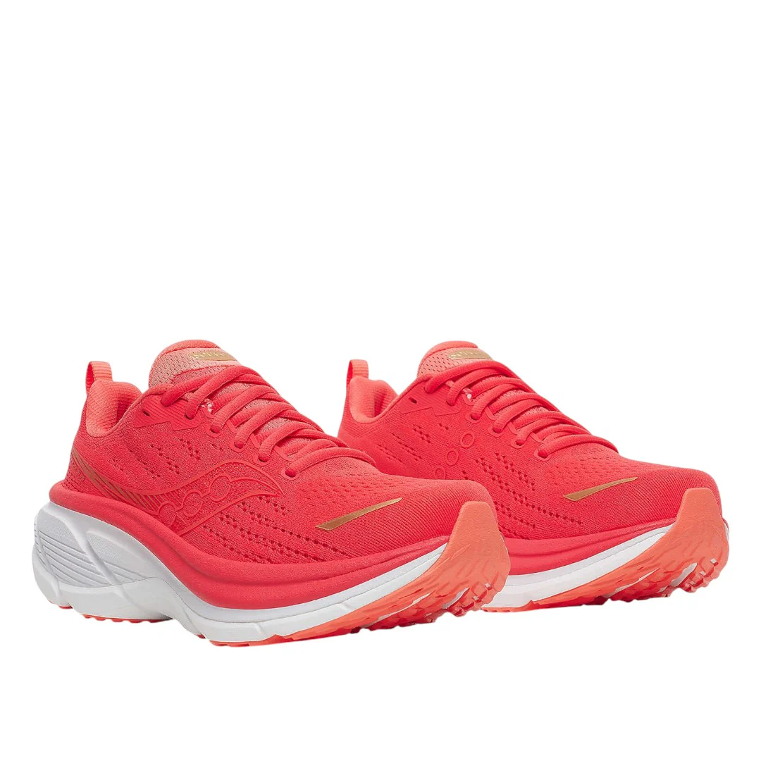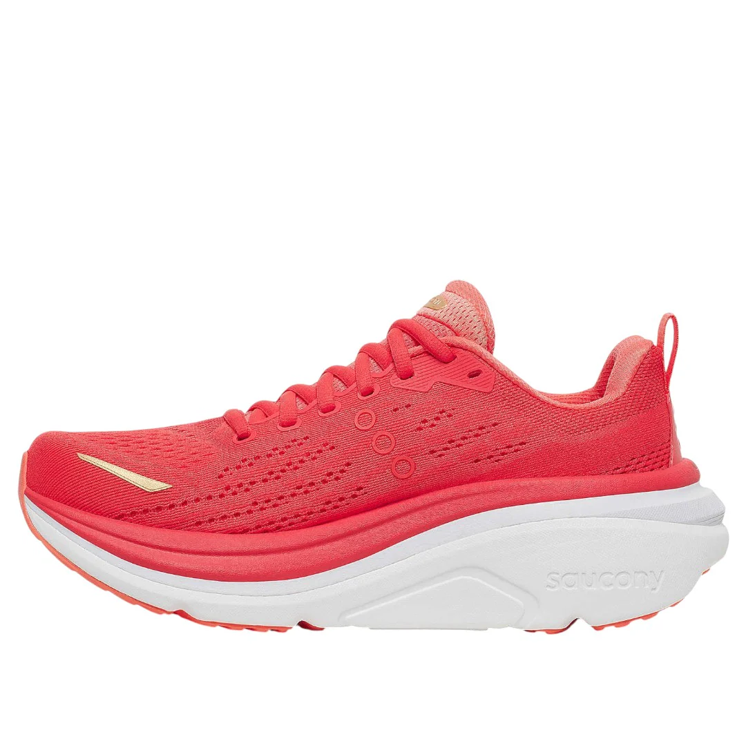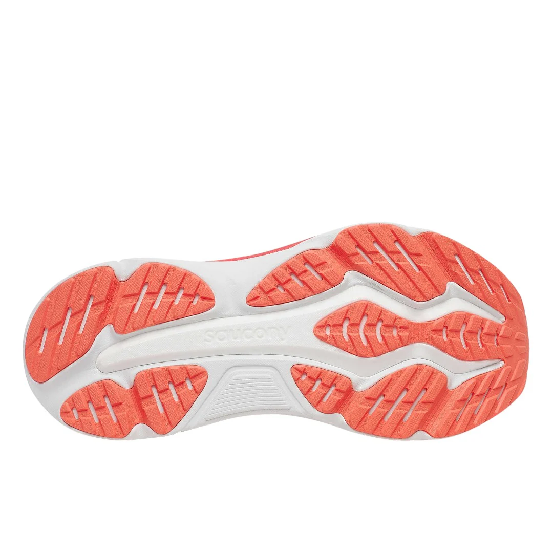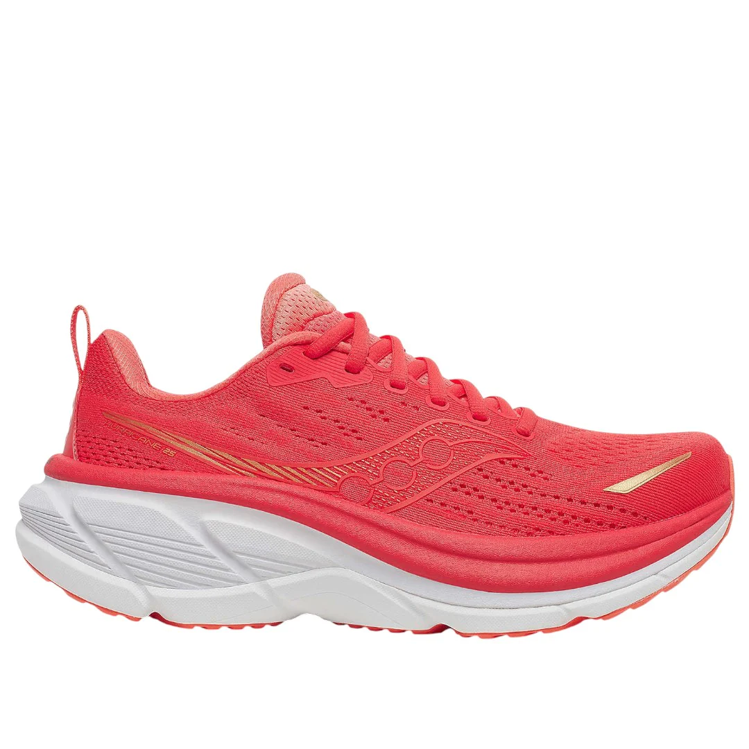 La Saucony Hurricane 25 combina cuscinetto morbido e supporto stabile per chi cerca comfort e sicurezza su lunghe distanze. L’intersuola integra uno strato spesso di PWRRUN PB sovrapposto a PWRRUN più reattivo per un’ammortizzazione plush ma dinamica. Il sistema CenterPath Technology guida delicatamente la falcata per controllare la pronazione senza essere invasivo. La tomaia in mesh ingegnerizzato è traspirante e avvolge il piede con sicurezza, mentre la suola è progettata per favorire transizioni fluide e durabilità su asfalto.