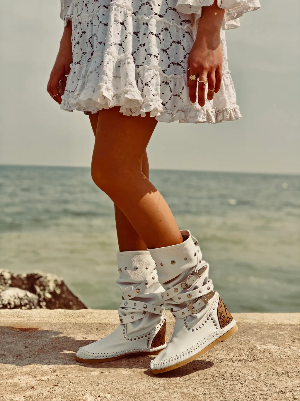 Ibiza Boots Boho con Cuciture su Tono Realizzate a Mano.
