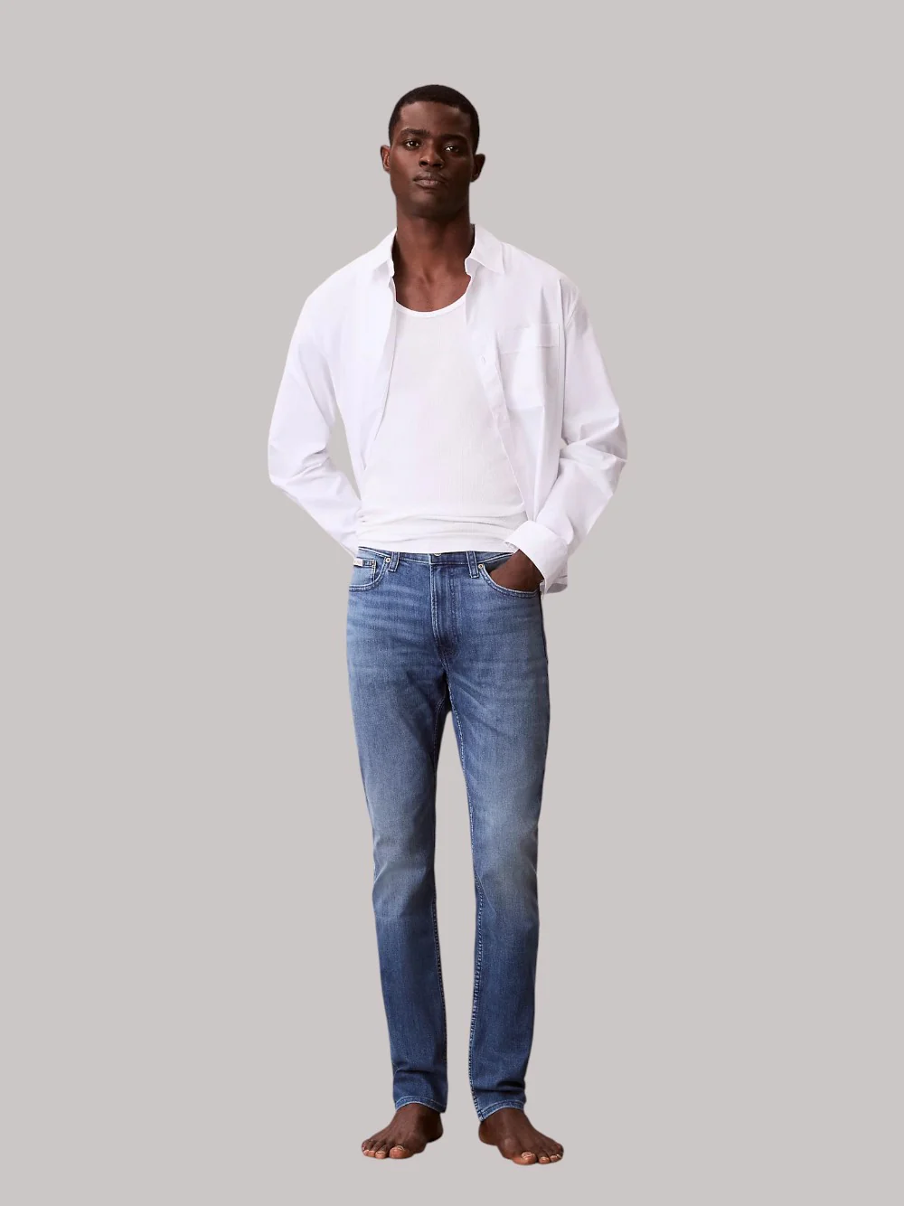 Realizzati in denim elasticizzato in cotone extra morbido, questi jeans Calvin Klein PE 2026 offrono una sensazione di comfort assoluto e massima libertà di movimento per tutto il giorno. I dettagli iconici del brand arricchiscono il design: l’etichetta Calvin Klein dal design anni ’80 sul taschino portamonete, la tasca con cerniera e stelo in metallo ispirata alla tradizione CK e la toppa in jacron con logo posizionata sul retro della vita. Un modello contemporaneo e versatile, pensato per chi cerca stile e comodità in un unico capo.