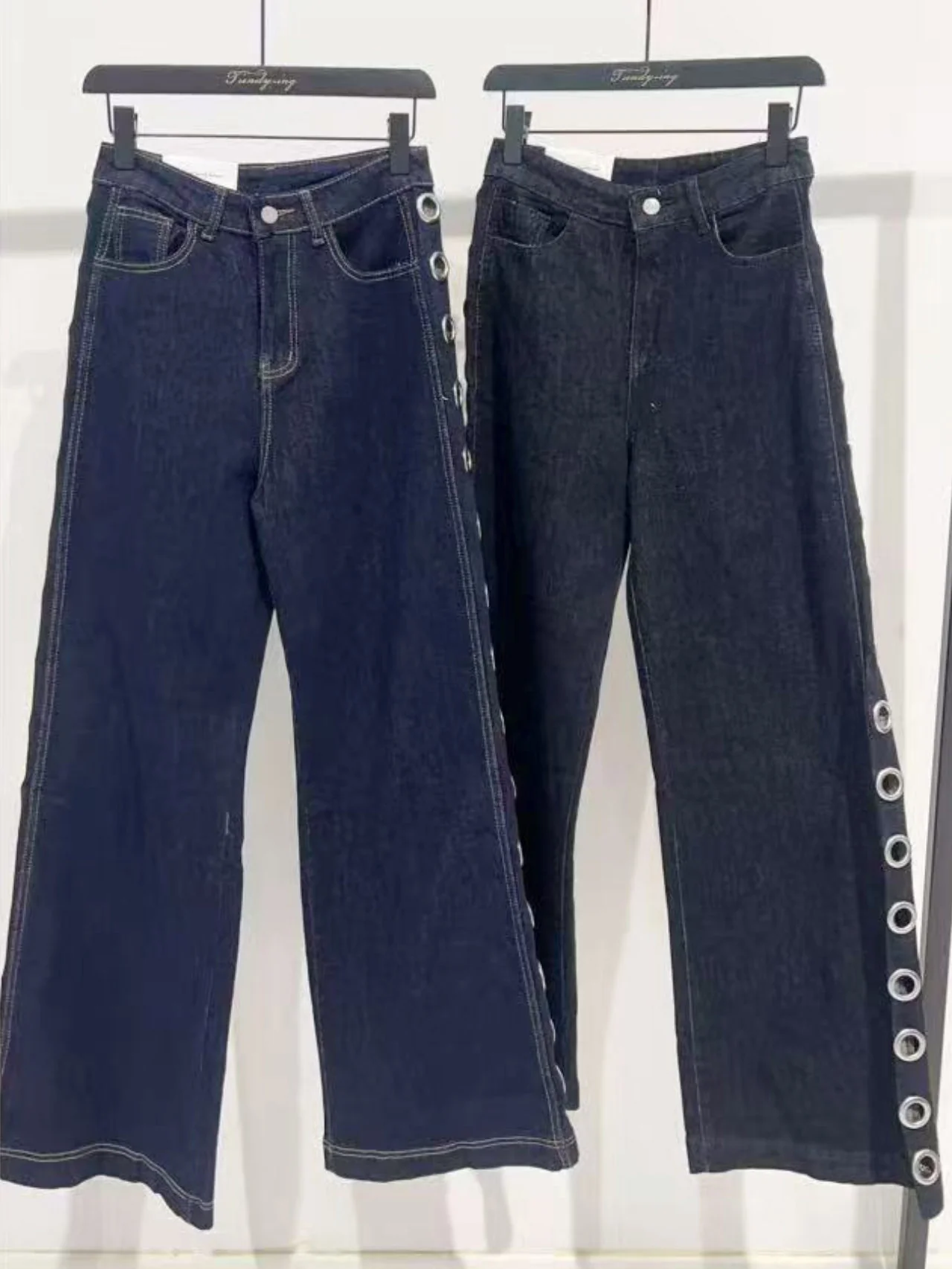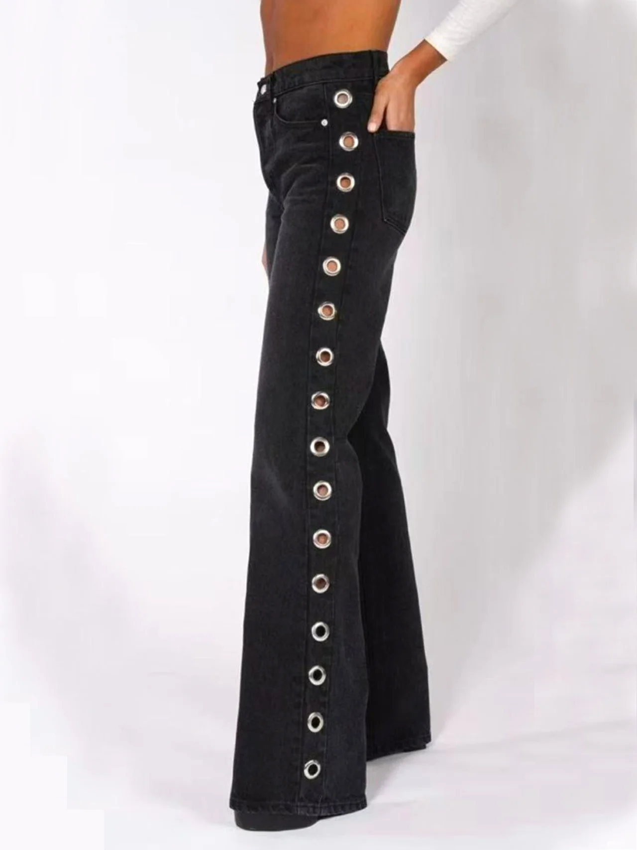 - Dai un tocco unico al tuo look con questi jeans arricchiti da borchie ad occhiello! Un capo alla moda e originale che ti farà distinguere con sicurezza in ogni occasione.
