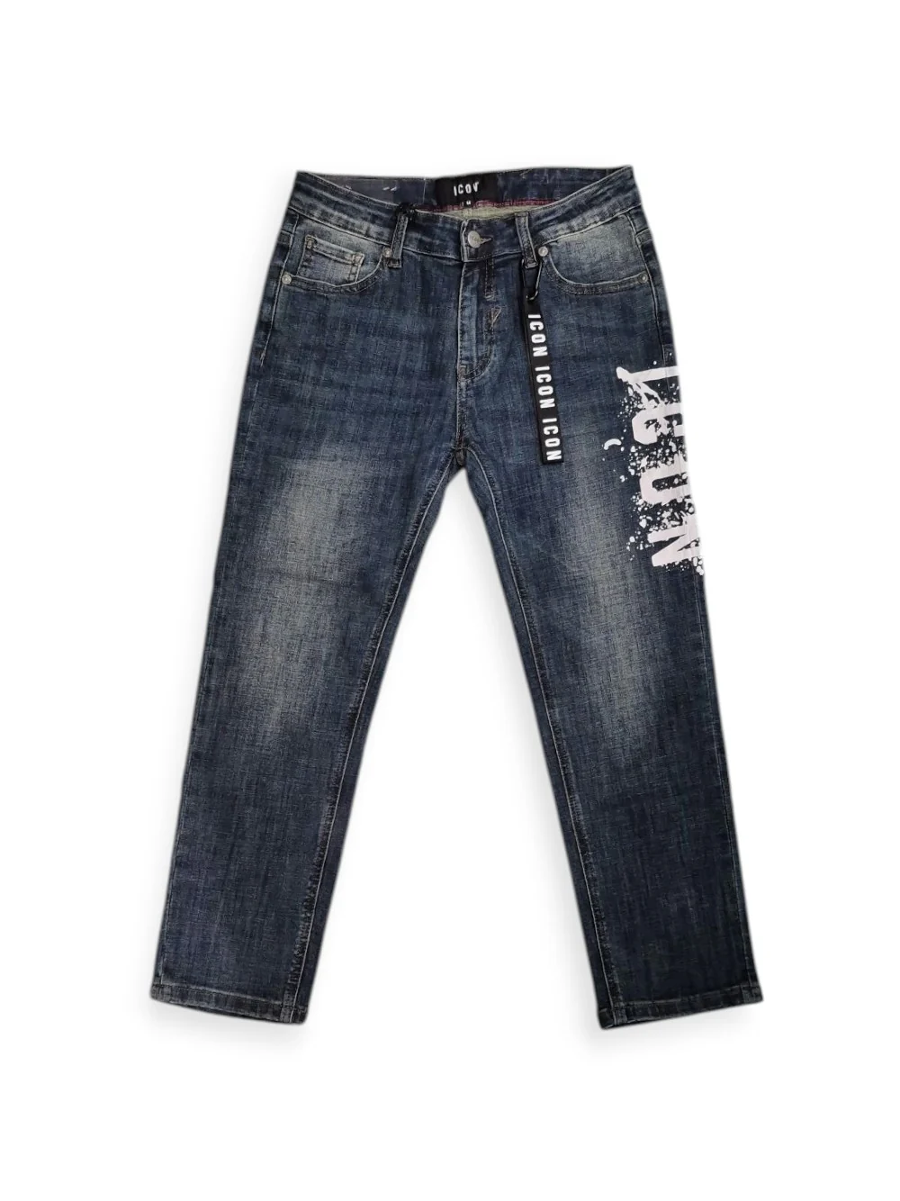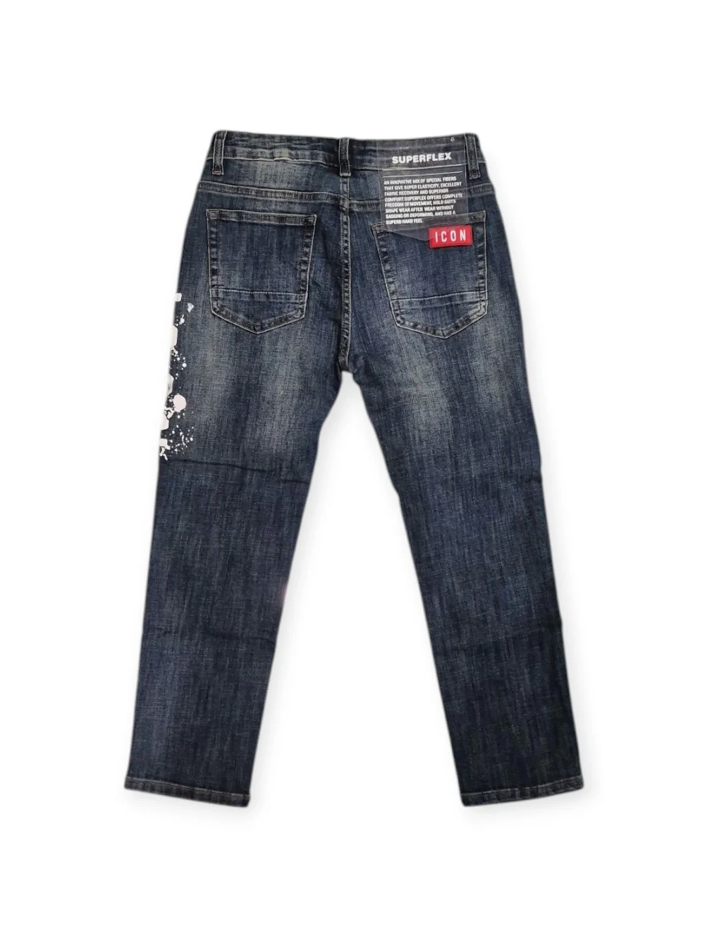 Jeans ICON Jr in Denim Scolorito Blu con Logo Schizzato IBDT00714