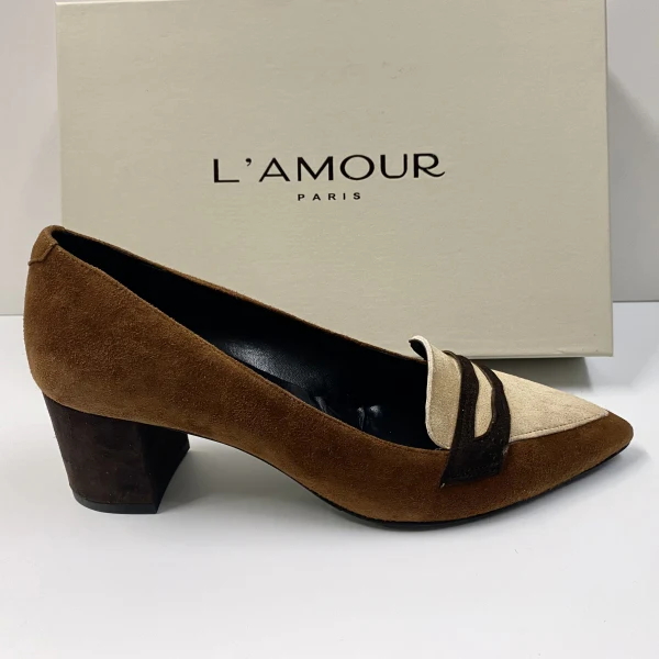 L’AMOUR 119 DECOLLETE IN CAMOSCIO CUOIO E MASCHERINA BEIGE/MORO