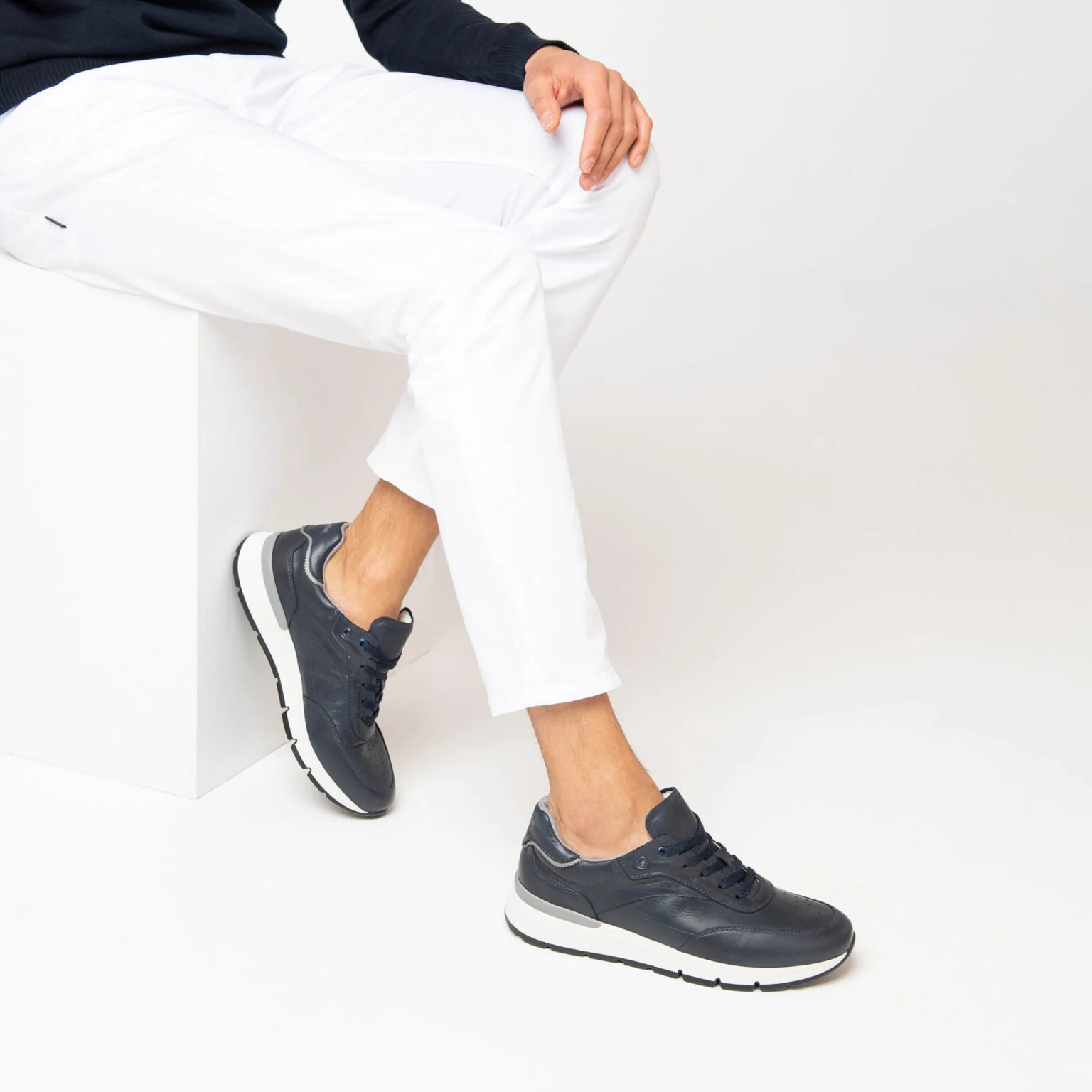 Sneakers in pelle con profilo a contrasto sul tallone. Fondo bicolore di 4,5 cm per un look urbano e di tendenza. Il sottopiede con tecnologia DryGo!® assorbe l’umidità e garantisce confort e benessere.