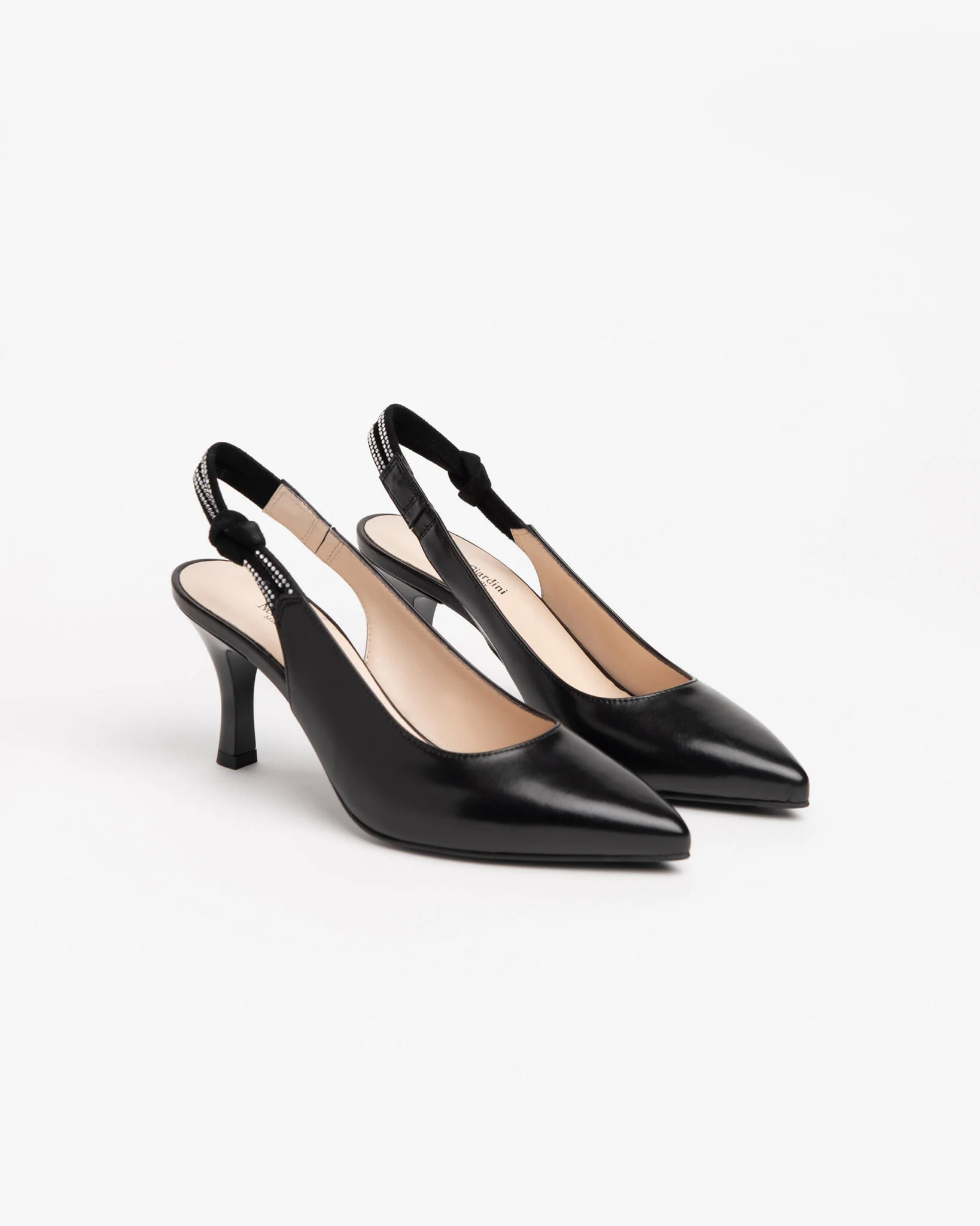 Slingback NeroGiardini realizzate in Italia con materiali di qualità e testati in laboratorio. La continua ricerca stilistica garantisce calzature dai trend sempre originali ed estremamente comode da indossare. Design sofisticato per un look glam. La produzione Made in Italy delle calzature NeroGiardini è sottolineata dal tricolore impresso sulle suole e sul packaging.