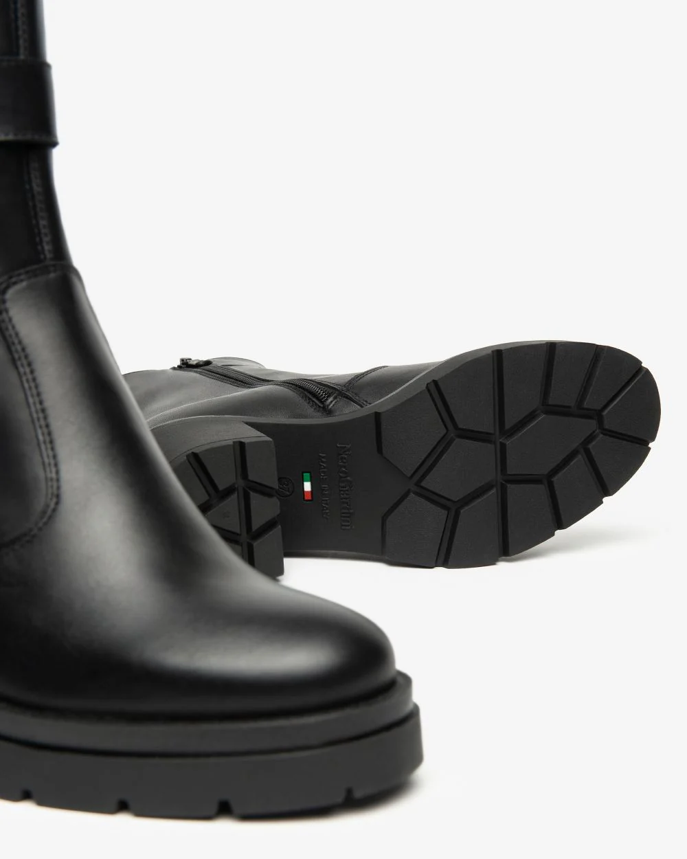 Stivaletti NeroGiardini, personalità e stile unico. Le calzature NeroGiardini sono realizzate in Italia, utilizzando materiali di qualità e le più avanzate tecniche di lavorazione. Ogni scarpa è il risultato della esperta competenza artigiana tramandata di generazione in generazione. Tutti i modelli sono progettati per offrire comodità e versatilità in ogni momento della giornata, dal lavoro alla serata speciale. Il reparto stile NeroGiardini è costantemente alla ricerca di nuove tendenze per offrire calzature sempre attuali e originali. NeroGiardini propone anche una collezione di borse, perfettamente abbinabili alle calzature, per un total look Made in Italy impeccabile.La produzione Made in Italy delle calzature NeroGiardini è sottolineata dal tricolore impresso sulle suole e sul packaging.