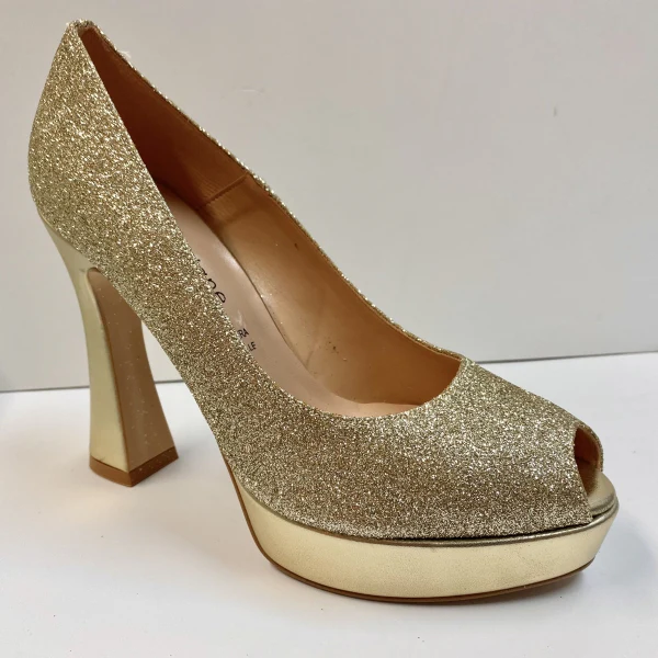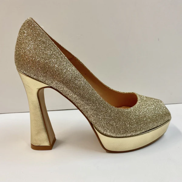 ONDE 7802 DECOLLETE CON PLATEAU E TACCO 10 IN GLITTER PLATINO