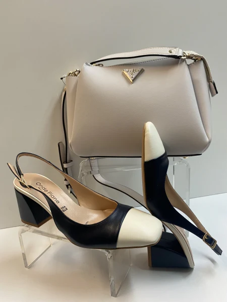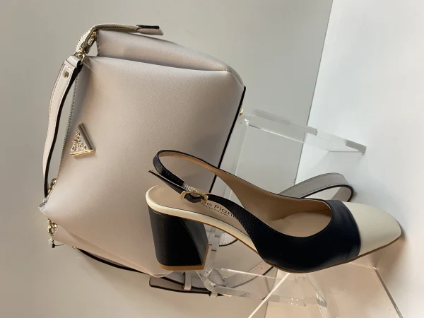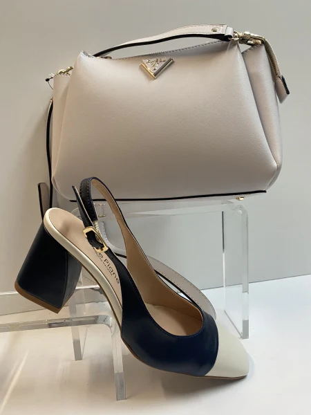 Slingback in pelle blù/burro