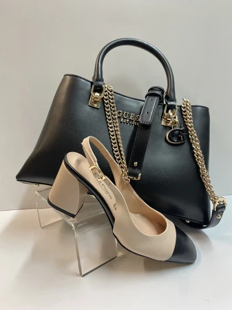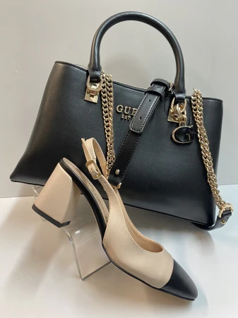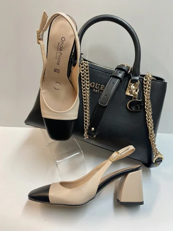 Slingback in pelle burro e punta nero
