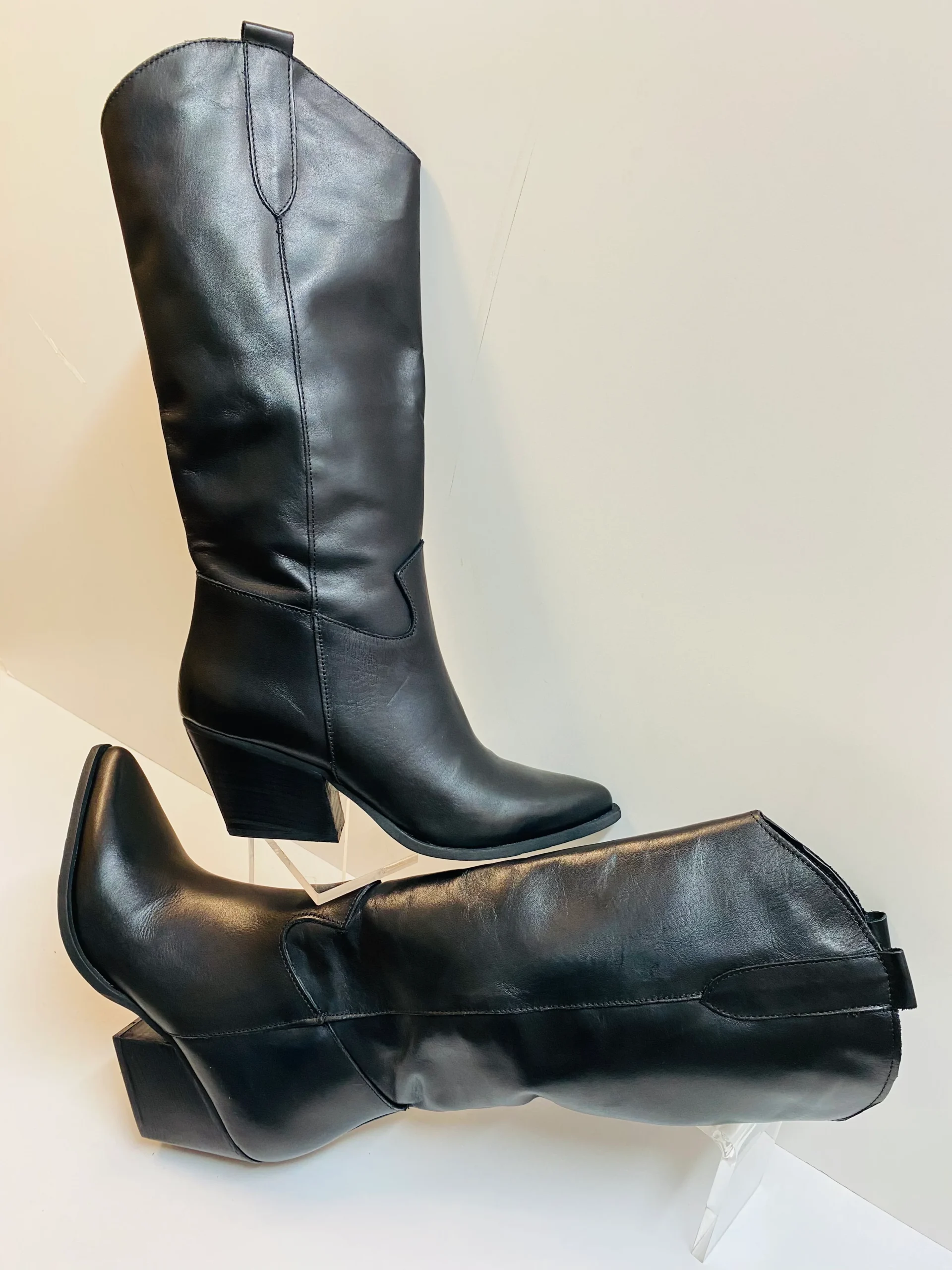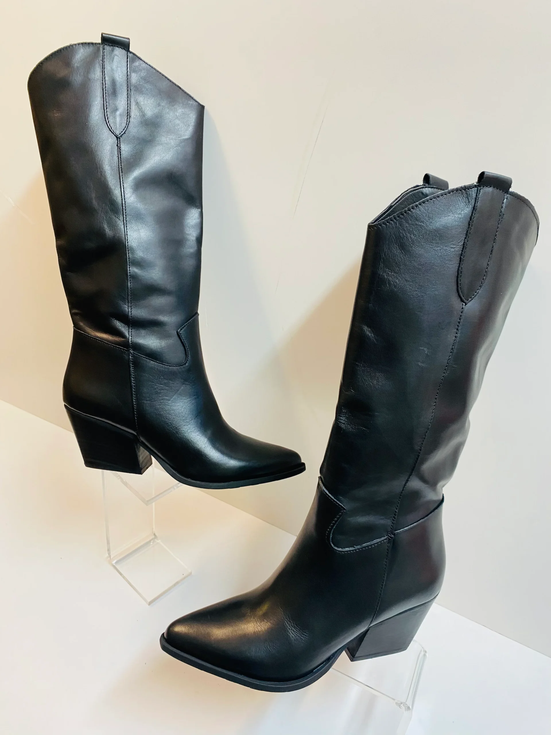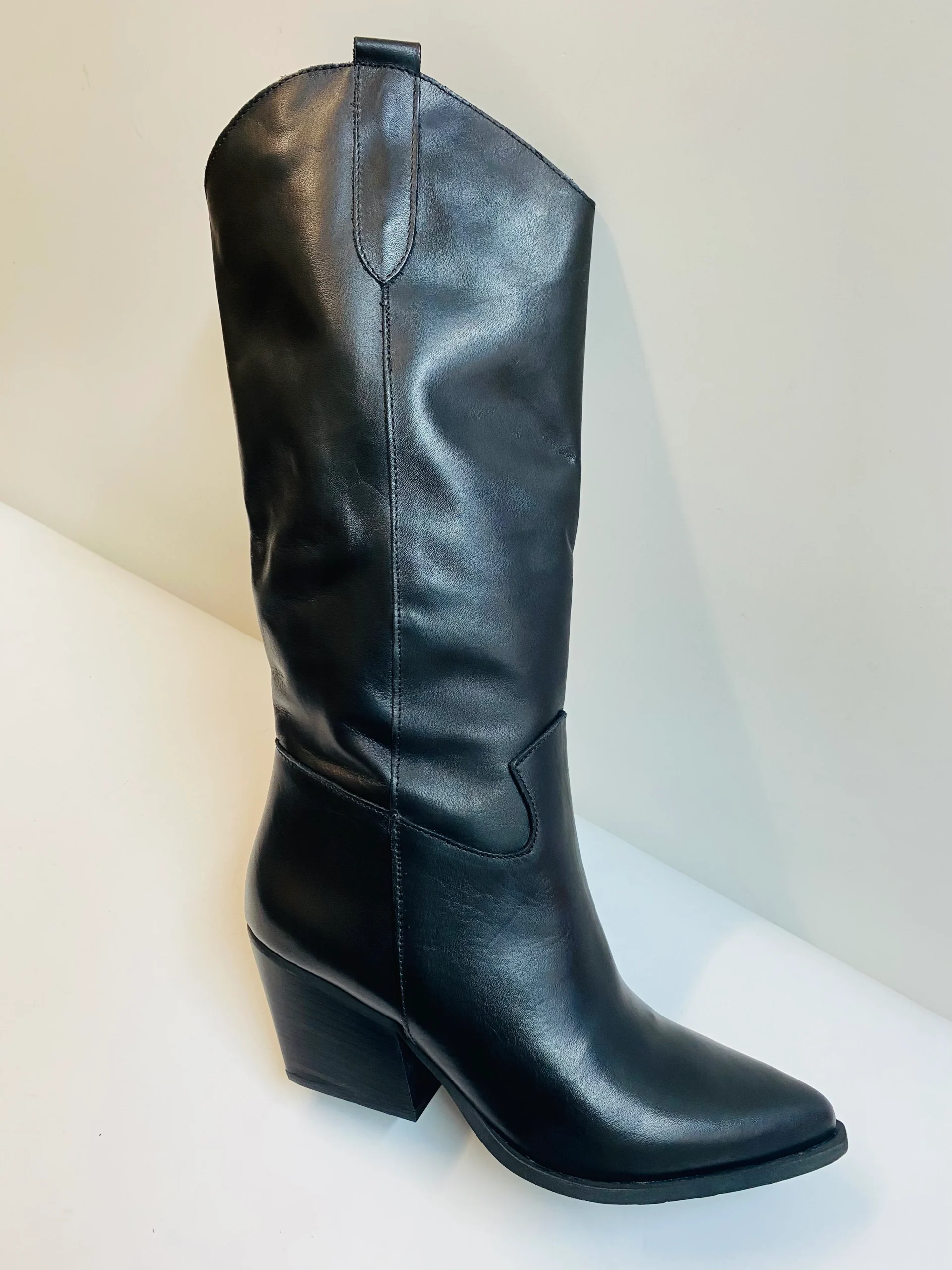 Stivale donna texano in pelle nera.