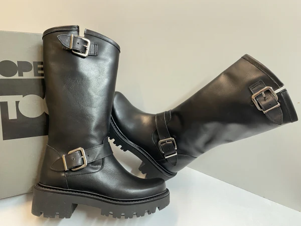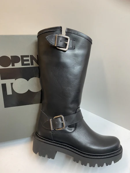 Open Too Gegia 1 stivale donna in pelle nero con doppia fibbia