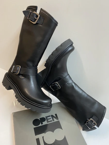 Questo stivale in pelle nero con doppia fibbia della linea Open Too Gegia 1 unisce eleganza e comodità. Il fondo in gomma garantisce stabilità e resistenza, mentre le due fibbie offrono un supporto extra per il piede. Perfetto per ogni occasione, sarà il tuo compagno di fiducia in ogni stagione.