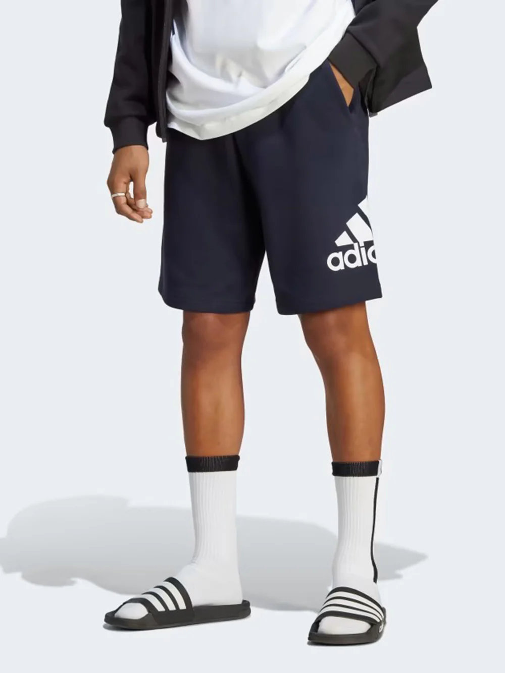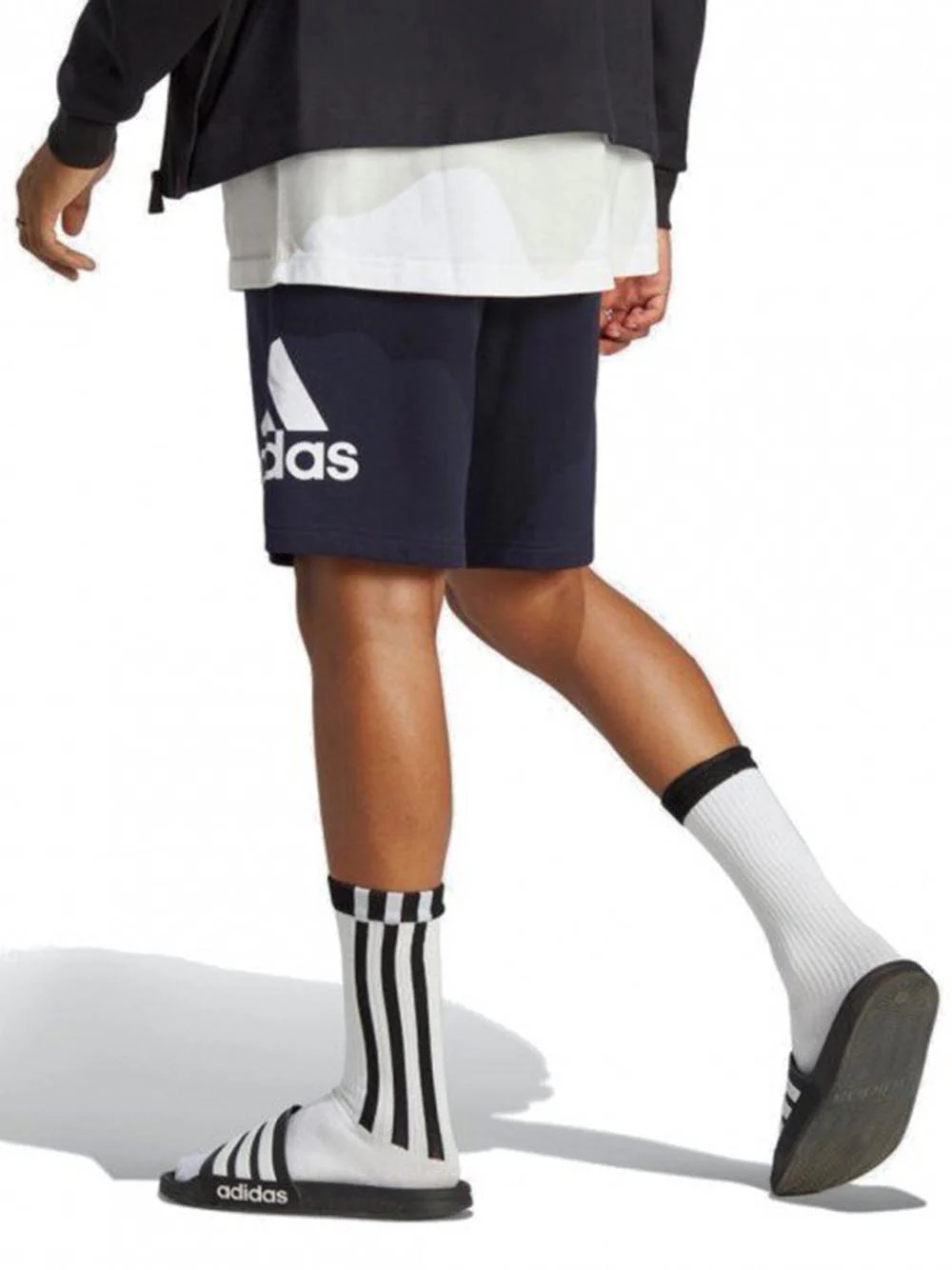 Pantaloncino Adidas blu da uomo in felpa garzata con stampa 3bar Dettagli:Realizzato in cotone garzato, morbido e versatile, quando vuoi stare comodo e non rinunci allo stile puoi indossare questo fantastico bermuda, una t-shirt e vai. Vestibilità:Vestibilità regularTaglie dalla S alla XXL
