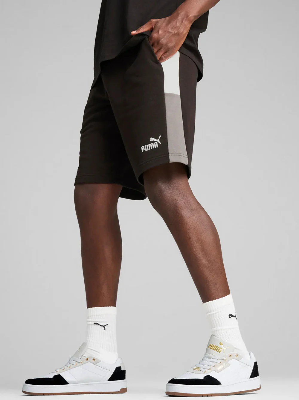 Pantaloncino Puma in Felpa garzata colorblock Nero Bianco e Grigio 684690-01