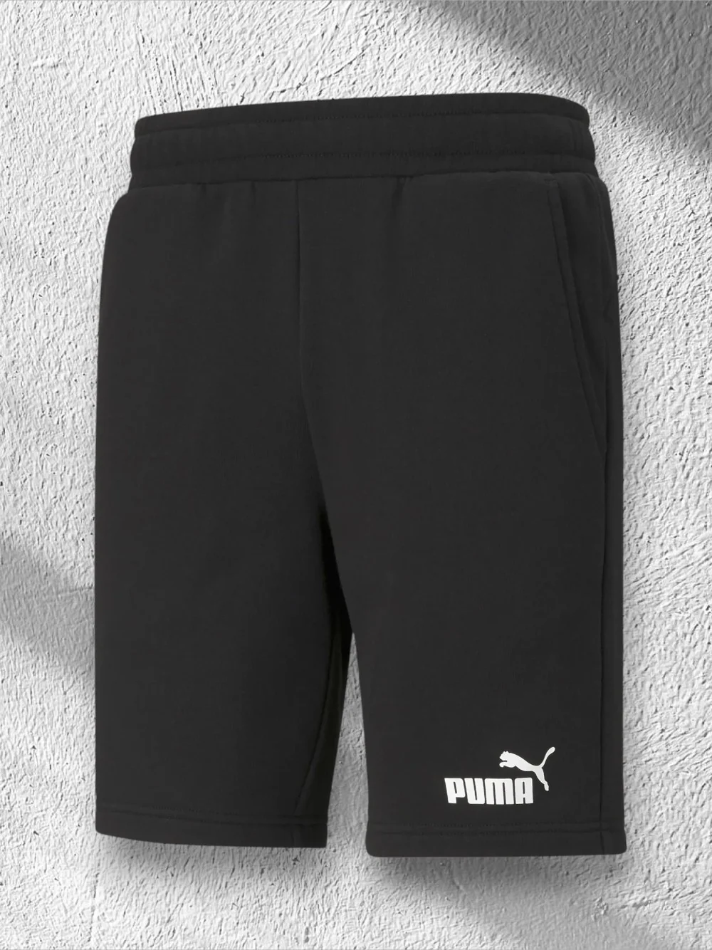 Dal taglio moderno e lineare, questo pantaloncino Puma della linea Essential è realizzato in felpa garzata nera, morbida e piacevole a contatto con la pelle. Il fit slim valorizza la silhouette senza rinunciare alla libertà di movimento, perfetto per un look sportivo ma curato.