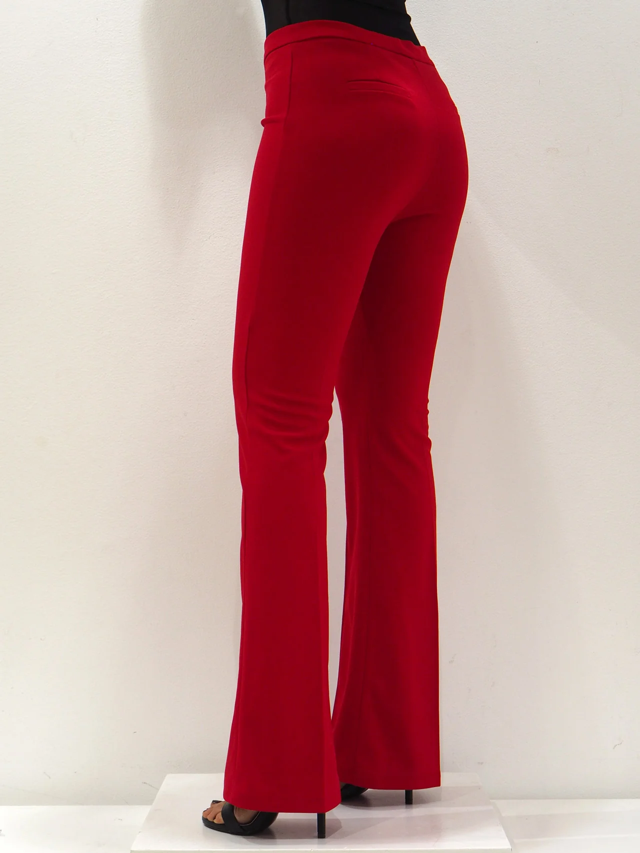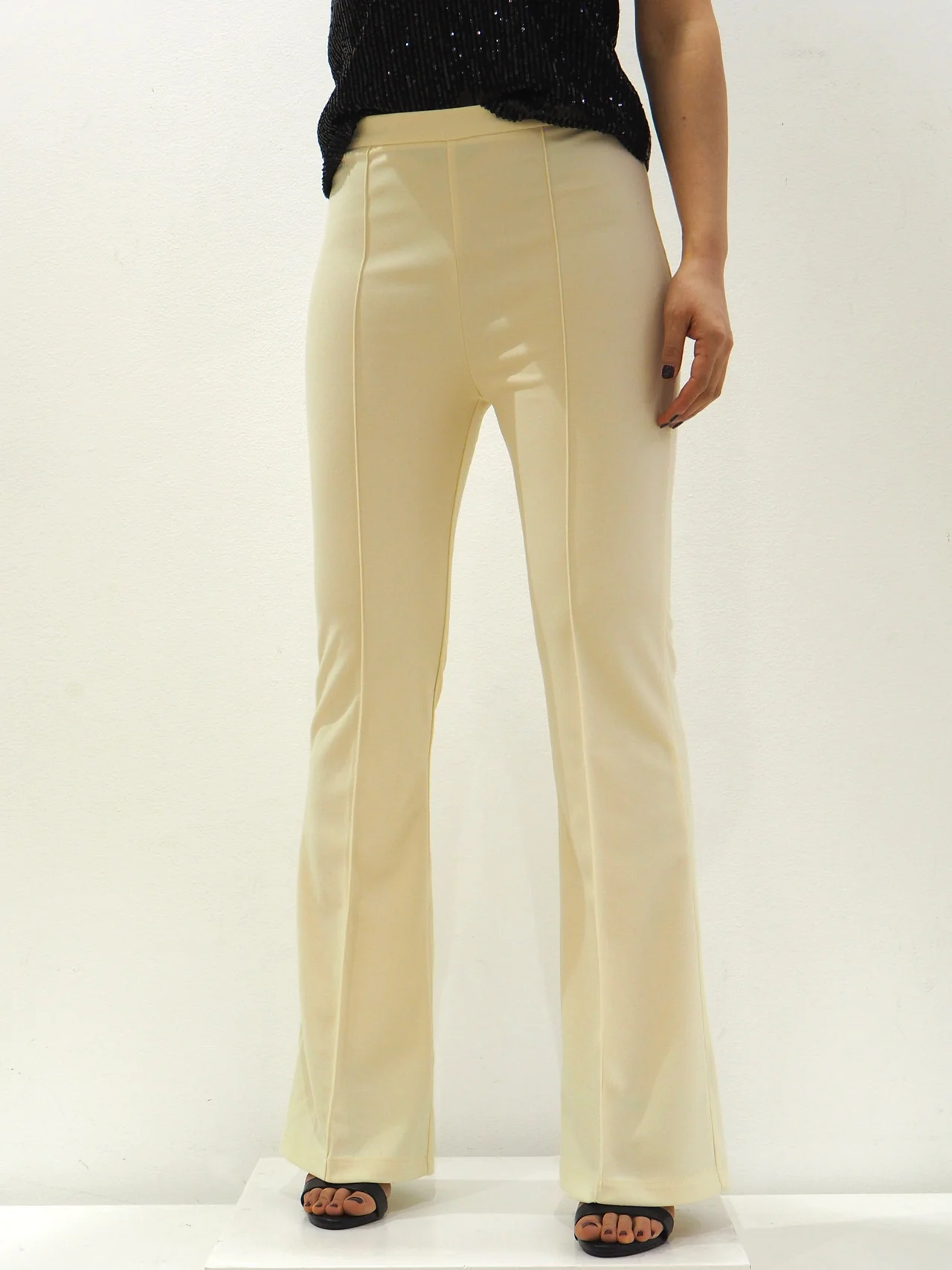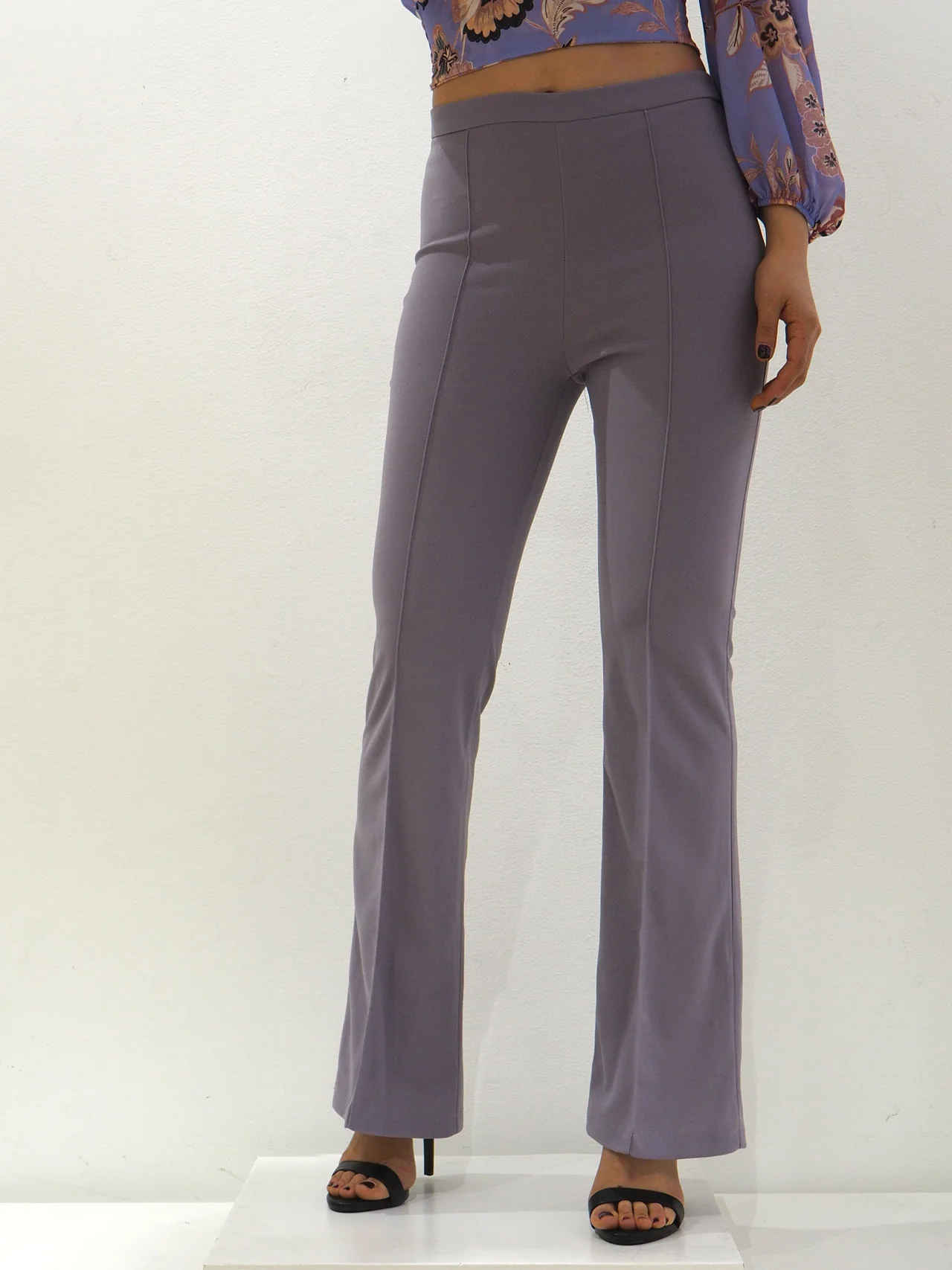 - Pantaloni a zampa in tessuto elasticizzato dal taglio elegante, chiusura con cerniera sul fianco