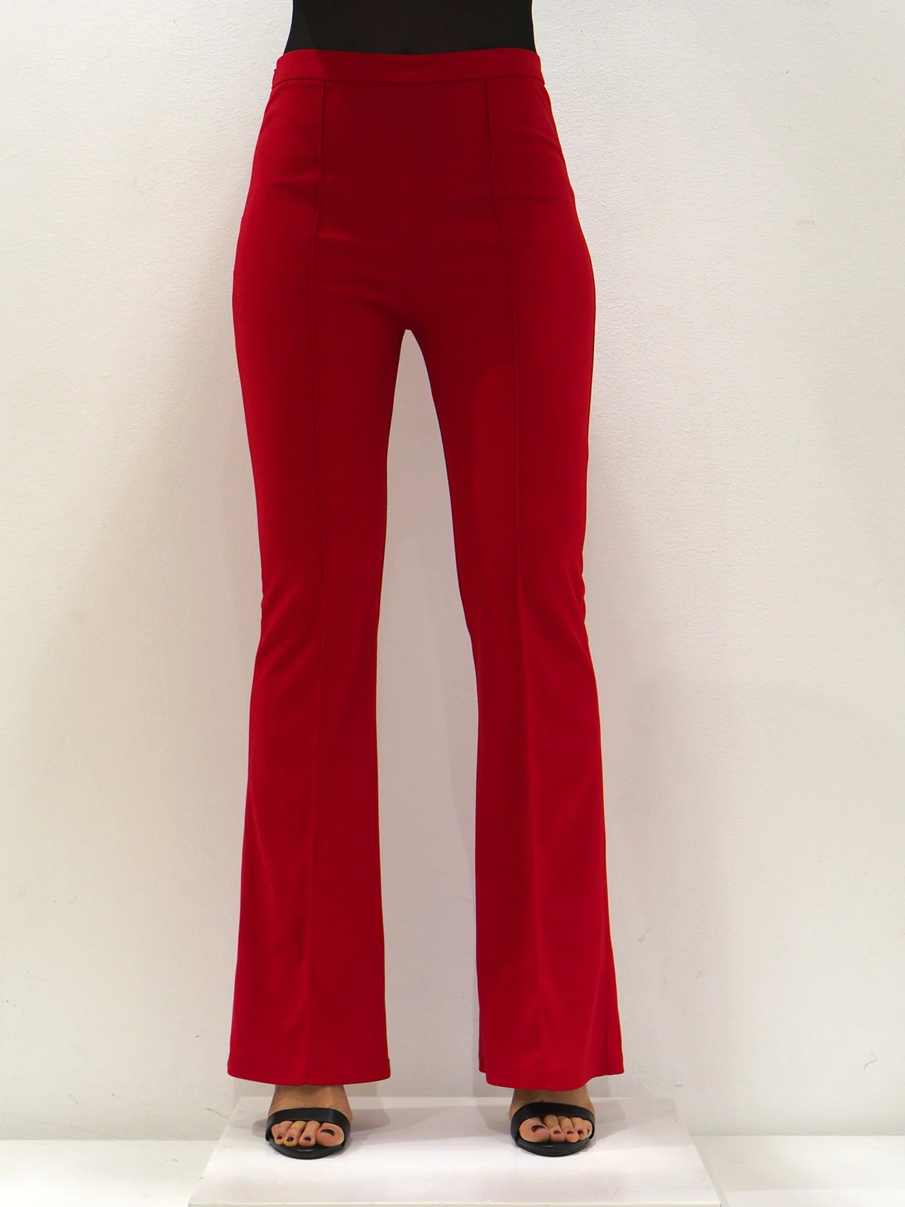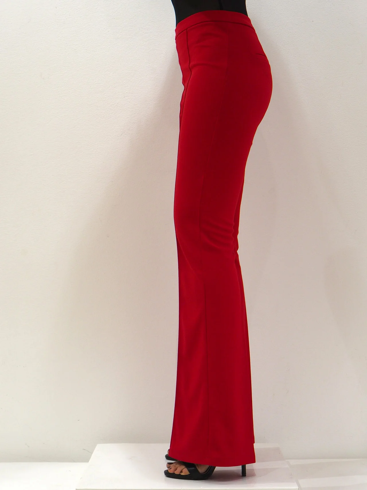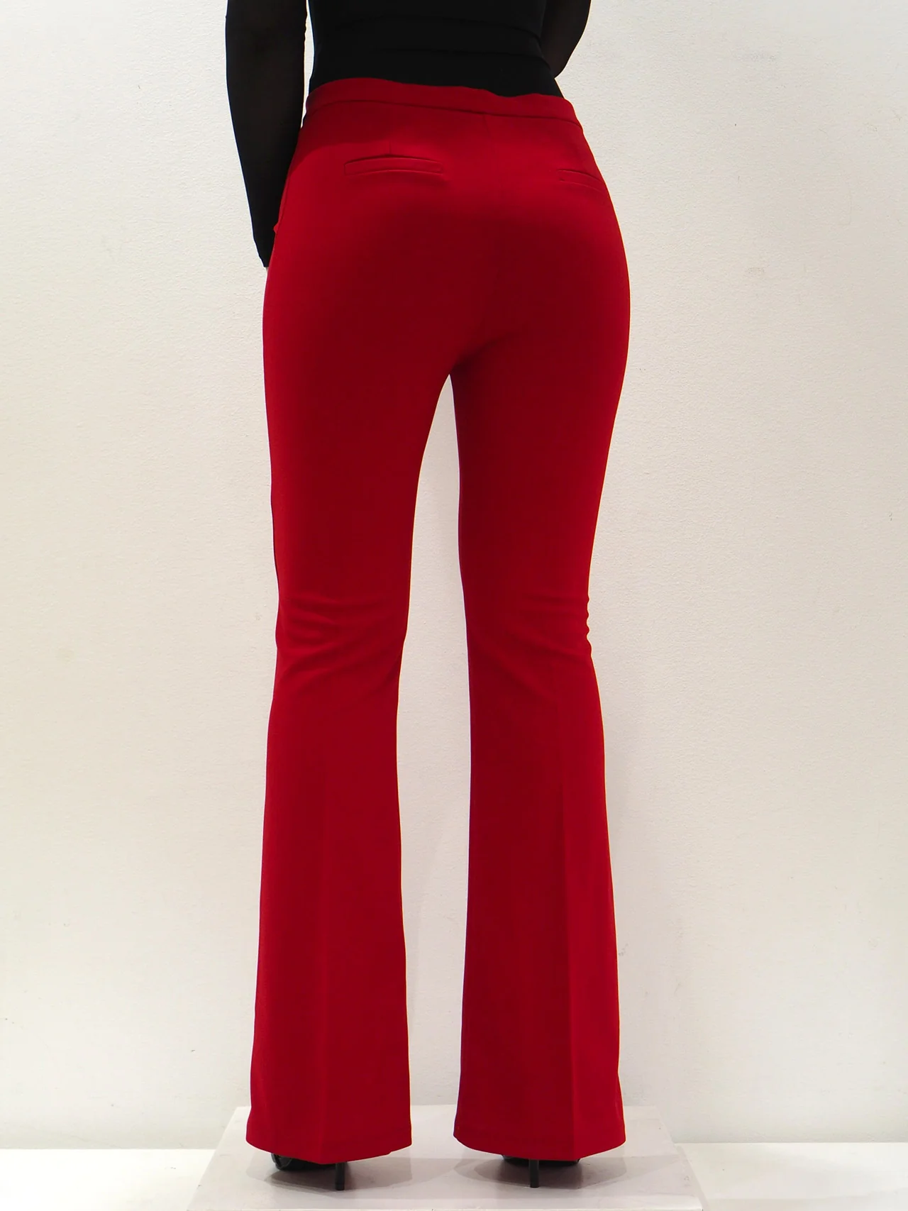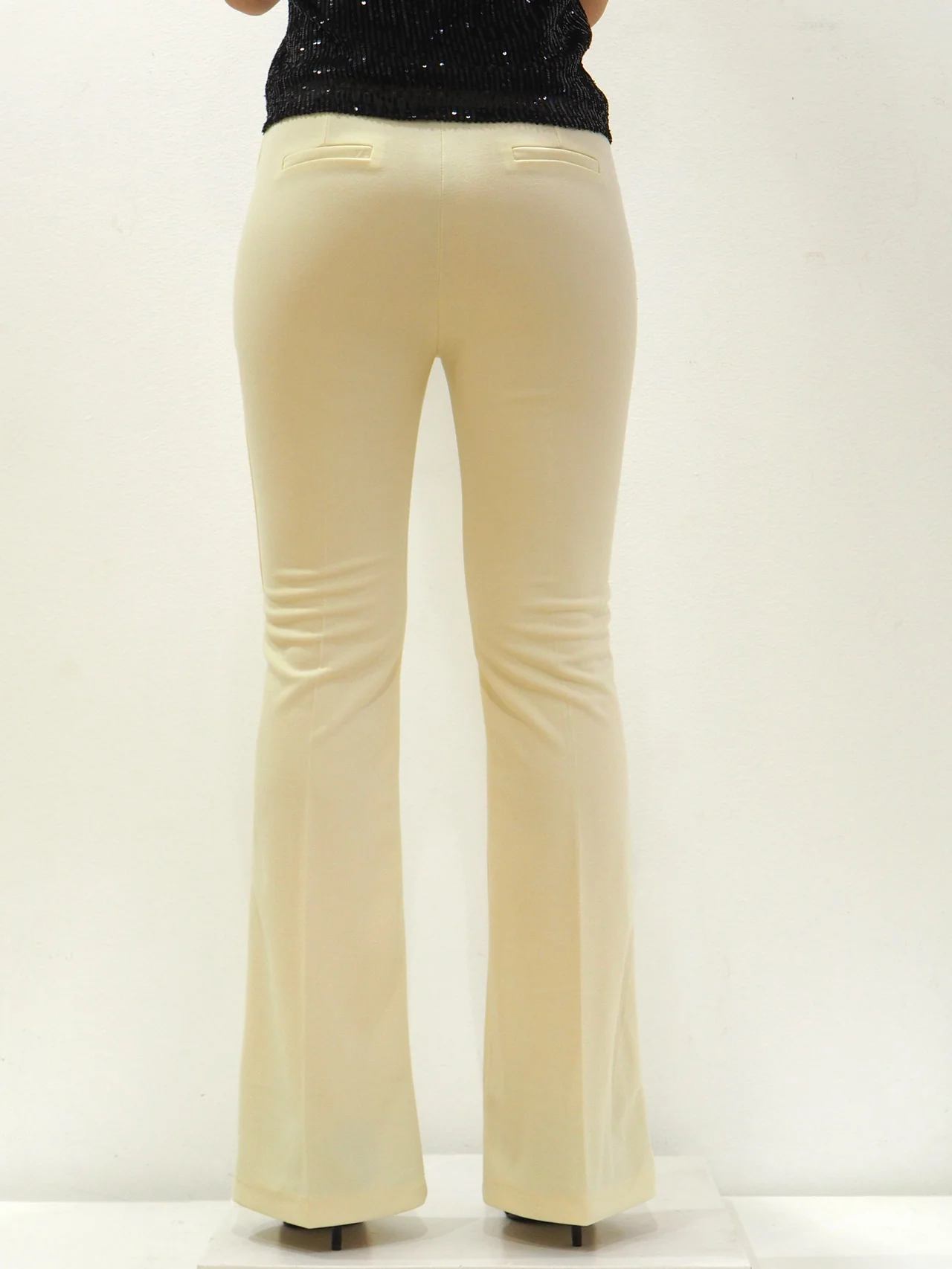 - Pantaloni a zampa in tessuto elasticizzato dal taglio elegante, chiusura con cerniera sul fianco