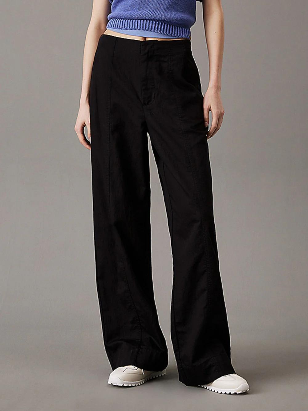 Pantalone CalvinKlein in Misto Lino e Cotone Nero 225340