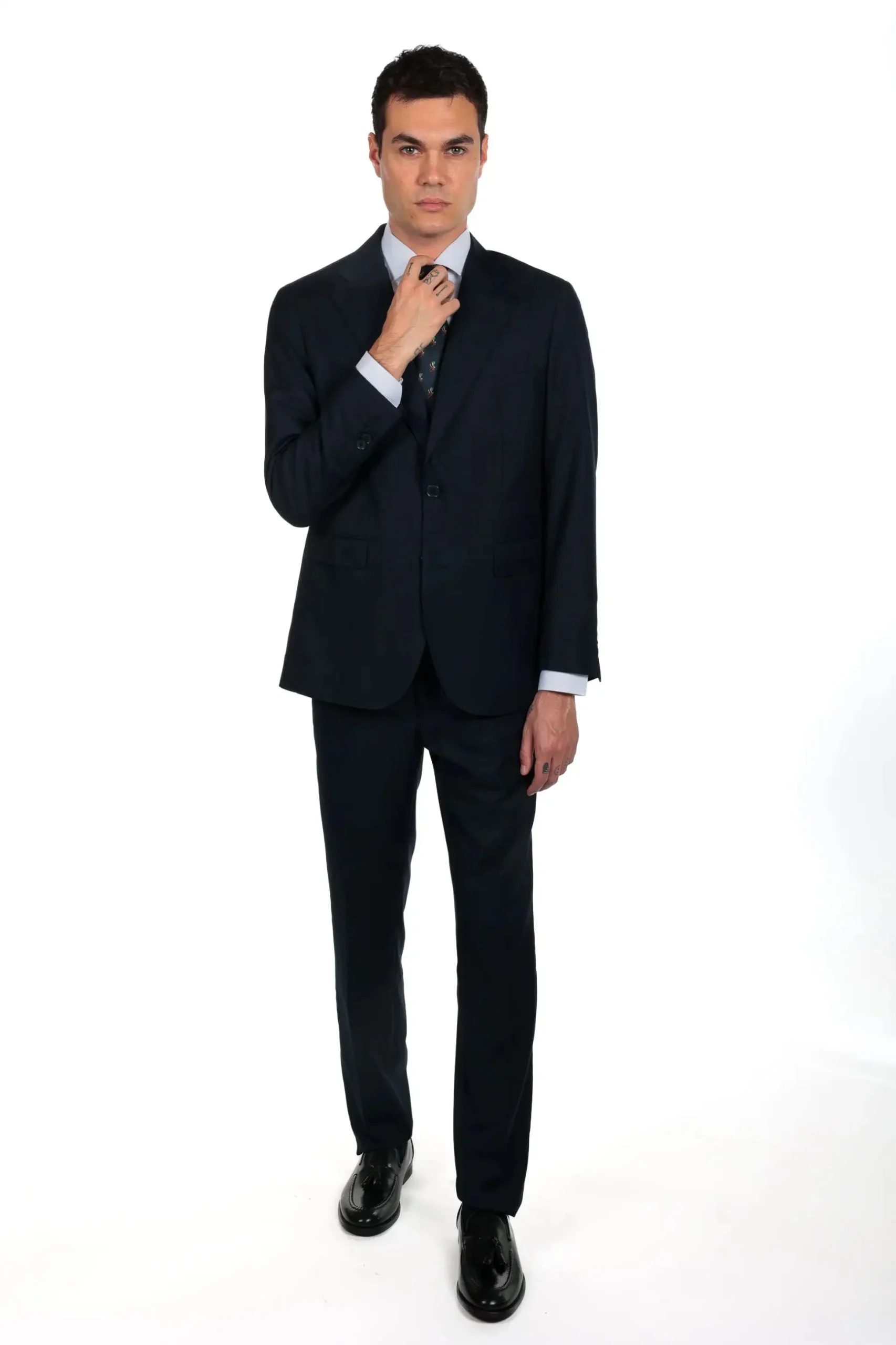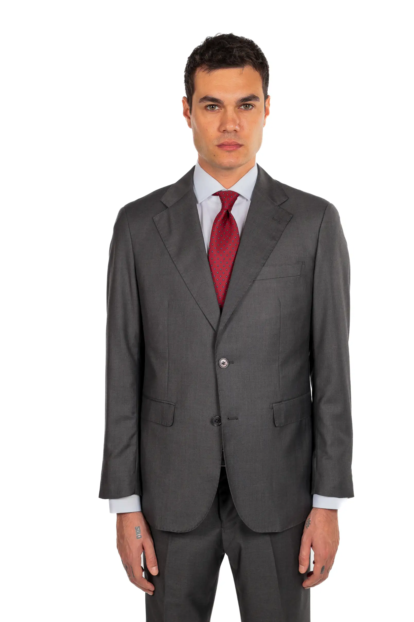 Il modello è alto 1,80 e indossa la taglia 48.