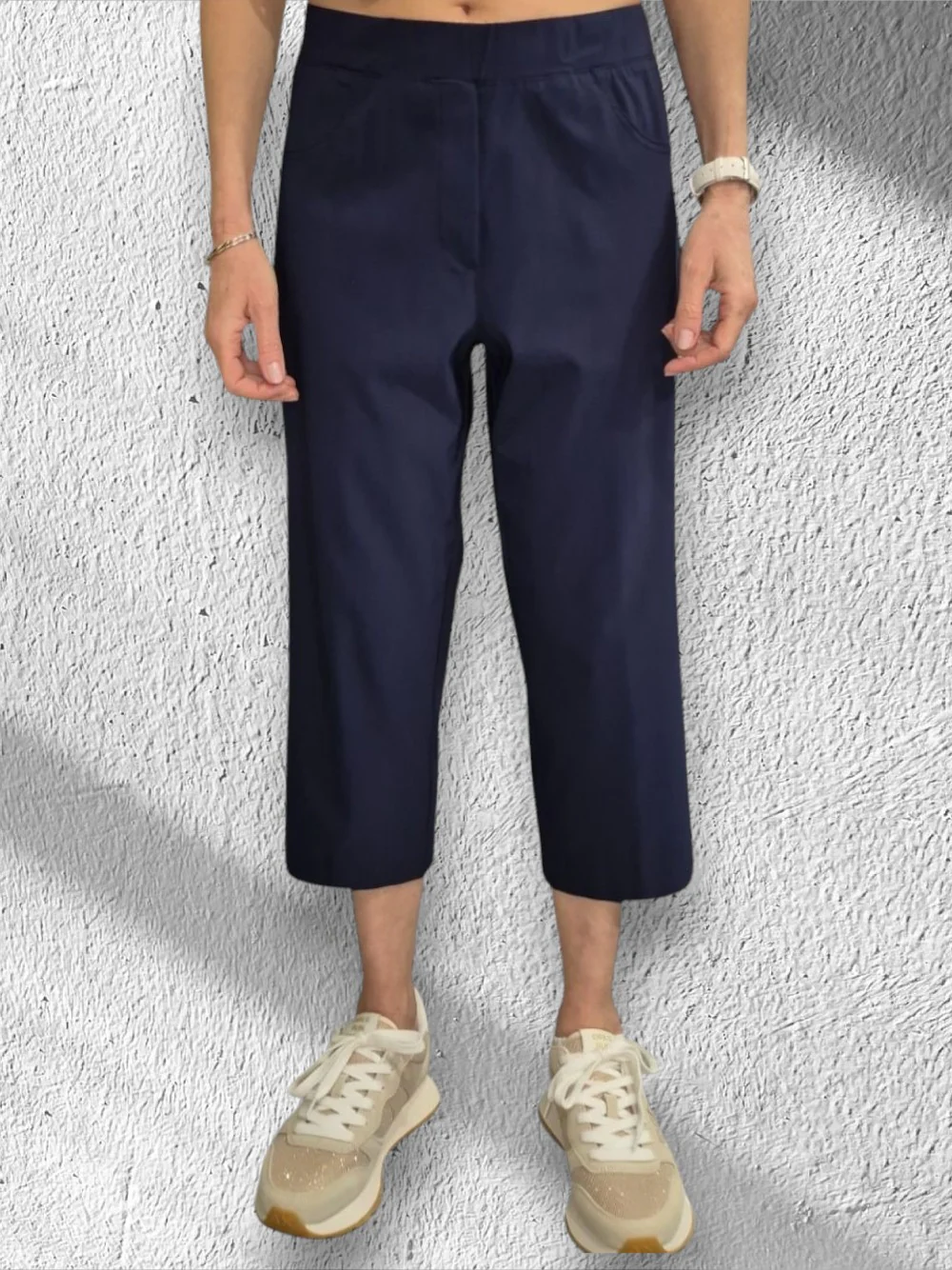 Il Pantalone Capri è realizzato in bengalina di cotone stretch, un tessuto pratico, leggero ed elasticizzato che garantisce una vestibilità perfetta e massima libertà nei movimenti. L’elastico in vita assicura comfort assoluto senza rinunciare all’eleganza di una linea pulita e femminile.