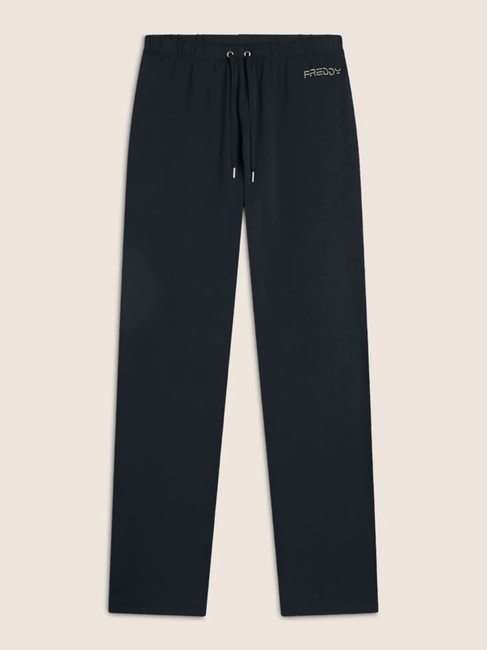 I pantaloni sportivi Freddy in Heavy Jersey Stretch sono la combinazione perfetta di comfort e stile. Con una lunghezza regolare e una gamba dritta, offrono una vestibilità fluida e versatile, ideale per il tempo libero. La vita con elastico e coulisse assicura una regolazione ottimale, adattandosi perfettamente alla silhouette. Il logo FREDDY decorato da perline dorate aggiunge un tocco sofisticato, trasformando un capo sportivo in un dettaglio di classe. Perfetti da abbinare a t-shirt, felpe o top per un look casual chic e sempre impeccabile.