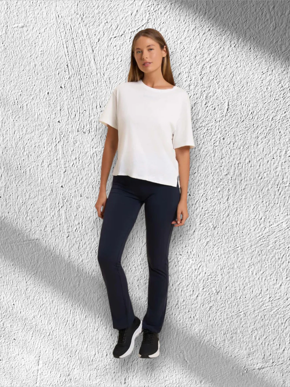 Questi pantaloni in morbido tessuto Heavy Jersey Stretch offrono un equilibrio ideale tra comfort e stile. La vestibilità regular e la gamba dritta donano una linea pulita e versatile, mentre la cucitura a cuore sul carré posteriore valorizza la silhouette con un tocco femminile. La vita regular con elastico interno assicura una calzata stabile e confortevole, adatta a ogni momento della giornata. Il logo FREDDY stampato sul fianco sinistro completa il look con un dettaglio distintivo.
